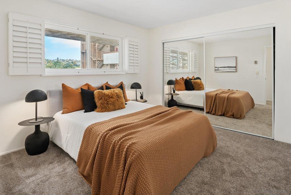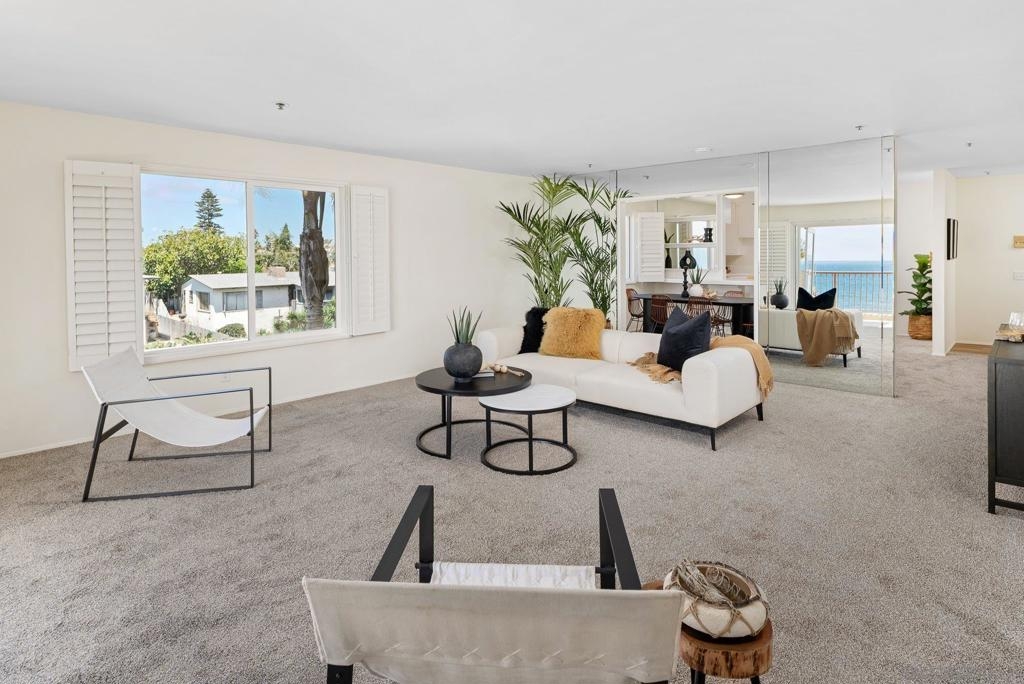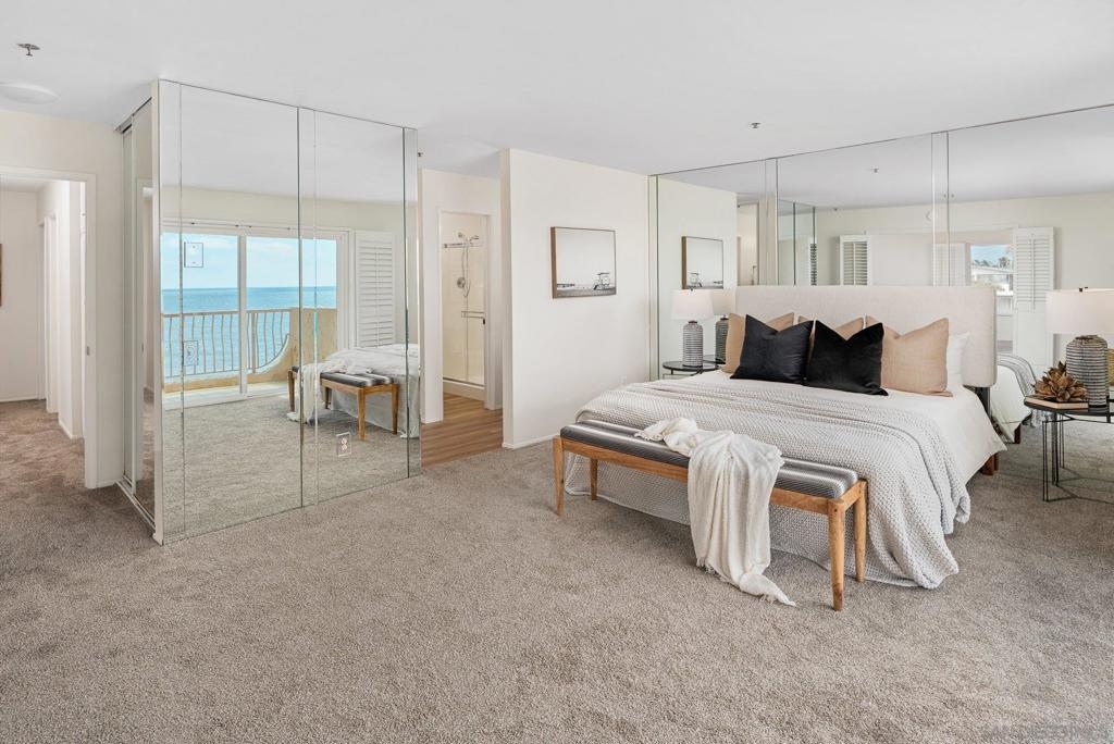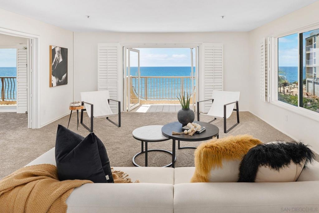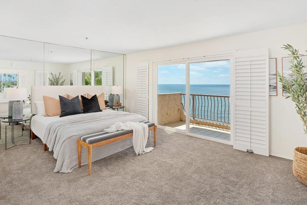 Experience the Ultimate Coastal Lifestyle…..Wake up to breathtaking views of the Pacific Ocean in this beautifully updated, west-facing beachside condo at Casa de la Playa, located in the heart of Ocean Beach. This spacious 2-bedroom, 2-bathroom corner unit offers 1,399 sq ft of light-filled living space, complete with two private balconies—perfect for enjoying spectacular sunsets, ocean breezes, and the soothing sound of waves. Step out of your primary suite onto your own private balcony and watch the sun dip into the Pacific right from your bed. The living room, equally impressive, features a second balcony with panoramic views that stretch over the coastline. Plantation shutters throughout provide both privacy and style, while the unit’s corner location offers added tranquility and natural light from three sides. The condo has been thoughtfully updated with new flooring, fresh paint, modern fixtures, and popcorn ceiling removal, giving it a clean, contemporary feel. A tandem garage with two parking spaces, generous closet space, and additional storage make this beach home as practical as it is beautiful. Walk directly down the nearby sea steps to explore the tidepools, take a short stroll to Sunset Cliffs or the vibrant Ocean Beach Village for dining, breweries, the weekly farmer’s market, boutique shopping, and year-round community events. Don’t miss this rare opportunity to own a piece of the Pacific Coast and live the beach lifestyle you’ve always dreamed of.