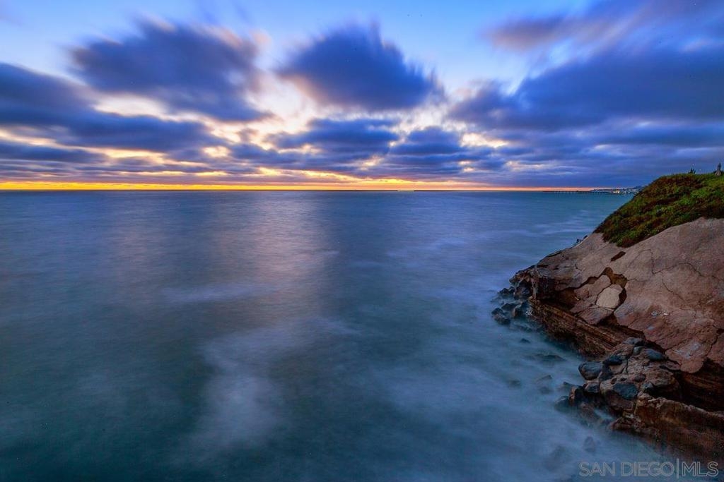 Absolutely stunning panoramic views! Enjoy a spacious, single level, open floor plan that allows you to take in the ocean breezes, soak up the fabulous California sunset views & offers not one, but two view balconies overlooking the ocean! Let the sound of the surf lull you to sleep and wake up to fabulous coastline views in your private master retreat! You will find yourself steps from ocean access & a private beach! Updated & move-in ready with a neutral palette to match your décor! The kitchen offers granite counters, stainless steel appliances & breakfast bar. Dual pane windows, plantation shutters, guest bedroom & oversized full bath! 1 garage space + 2 additional parking spaces! Beach living at it’s finest! Beach living at its finest! Rarely available, beach front condo with absolutely stunning panoramic ocean and coastline views! From the moment you enter your eye will immediately be drawn to the ocean views! Enjoy an open floor plan that includes an updated kitchen with granite counters, stainless steel appliances and a breakfast bar. The large adjoining dining room has plenty of room to gather around the table and entertain! The party can then flow effortlessly into the spacious living room where you can sit in comfort and take in the sunset or relax on the balcony and listen to the surf! The generously sized master retreat is a wonderful place to take in more ocean and coastline views and offers the second view balcony, a dressing area, private shower, and in unit laundry. Additional guest bedroom & spacious bath with dual sinks. Dual pane windows and sliding doors, plantation shutters, luxury vinyl flooring throughout & ample closet space. Steps to ocean access, beach, and surf! Well maintained gated complex has a spa and low HOA fees. THREE parking spaces include 1 shared garage space plus 2 parking spaces! Perfect location allows you to enjoy Ocean Beach and Sunset Cliffs while being minutes away from Shelter Island & Liberty Station! Equipment: Dryer, Washer Sewer: Sewer Connected Topography: ,LL Frontage: Ocean/Bluff