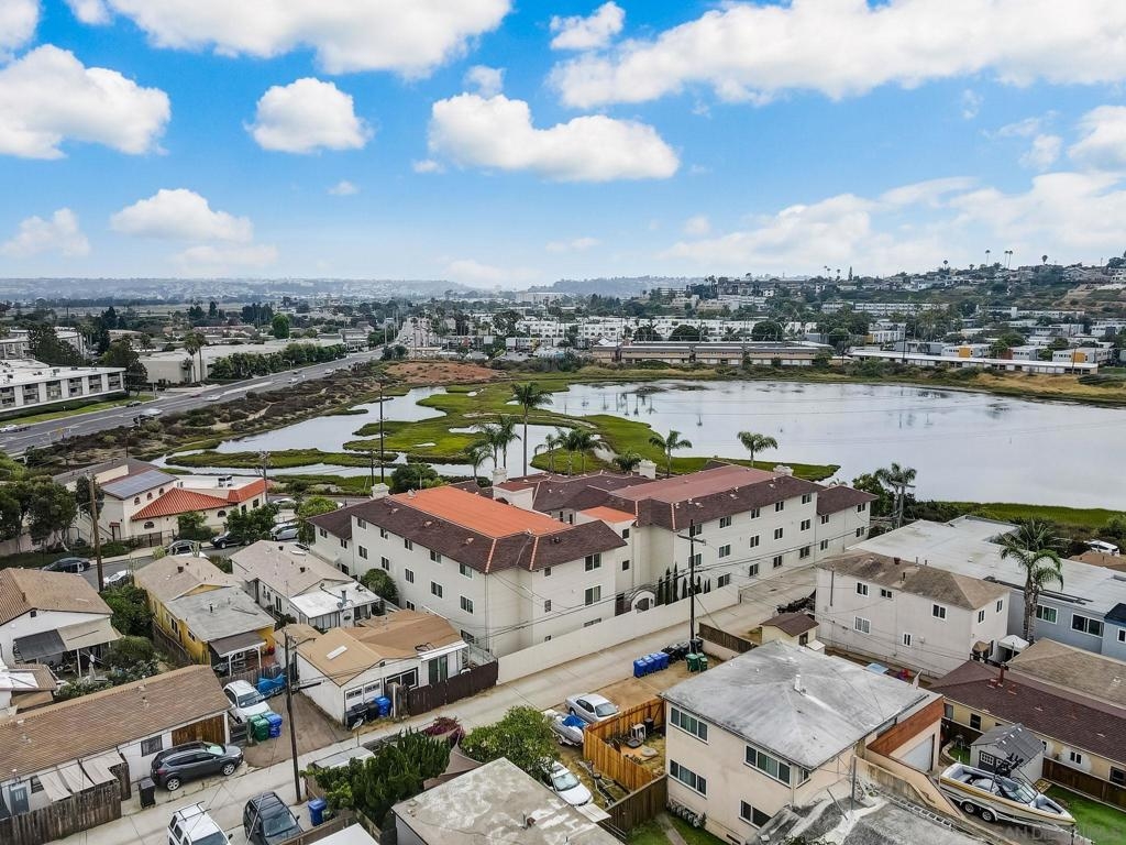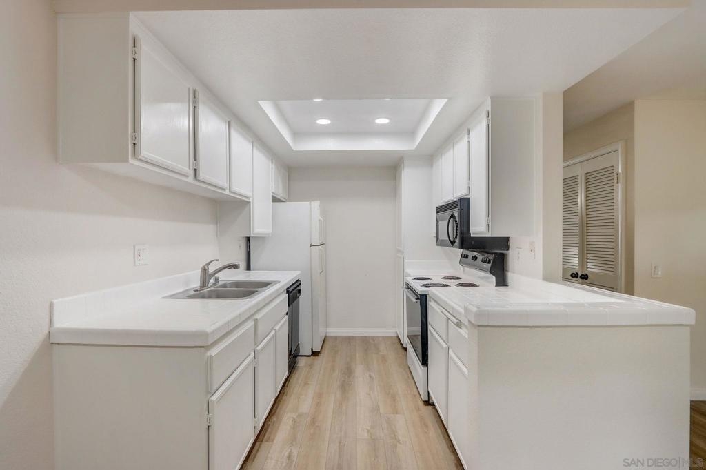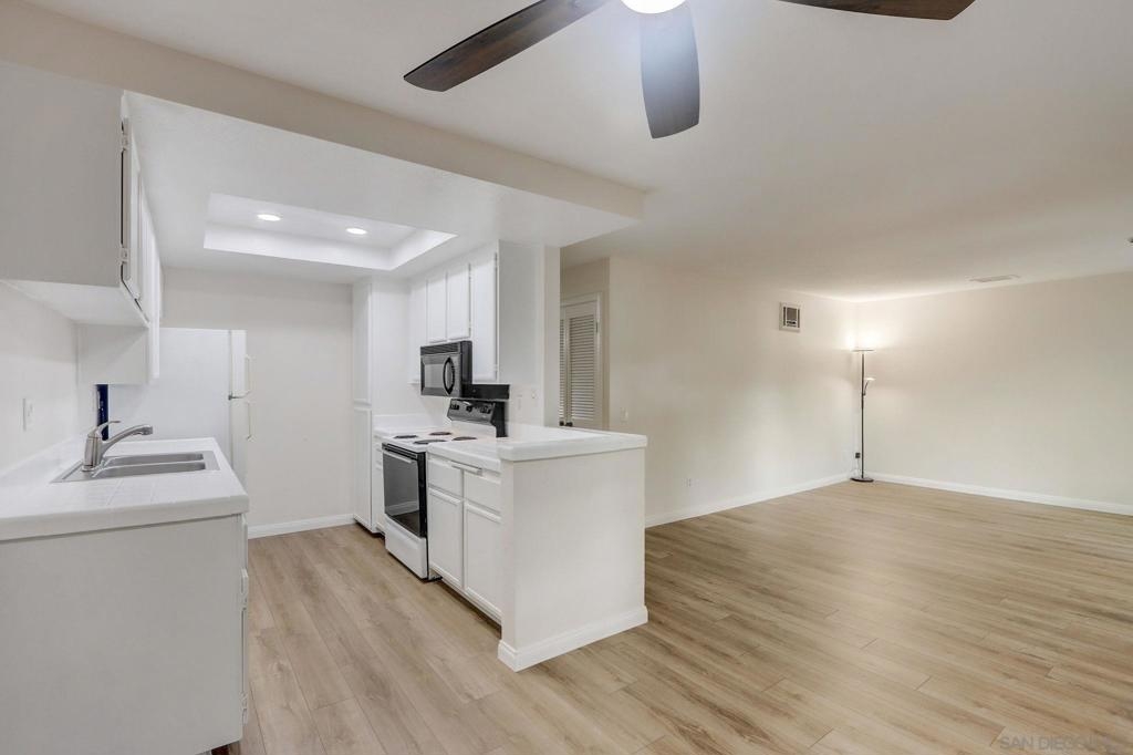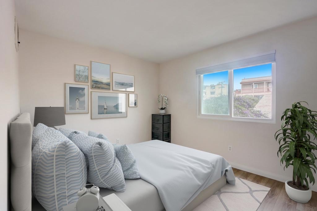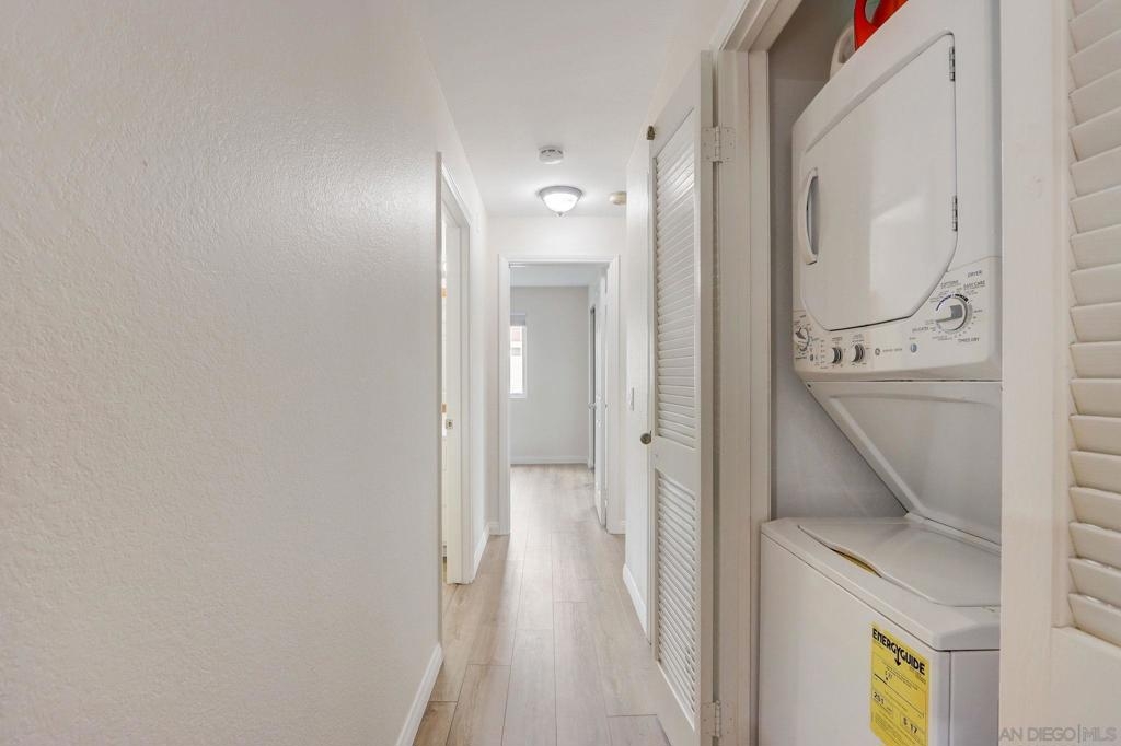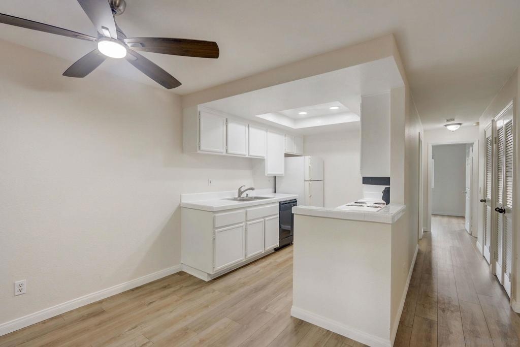 Come and enjoy a relaxed beach condo community that is less than 2 miles from Ocean Beach. Enter to gaze upon an open concept floor plan allowing the living room, dining area and kitchen to flow seamlessly together. The kitchen features crisp, white cabinetry, counters and appliances. Large windows bathe the interior in natural light throughout this light and airy unit. Both bedrooms are of generous size, one with an en suite bathroom. In-unit laundry includes a stacked washer and dryer. An assigned parking space in the gated, underground parking garage - an asset in beach communities. Famosa Terrace is a gated community that offers its residents community courtyards. Minutes from Sea World, Mission Bay, UCSD, San Diego Airport and all that makes living in San Diego so great. This is a must see!