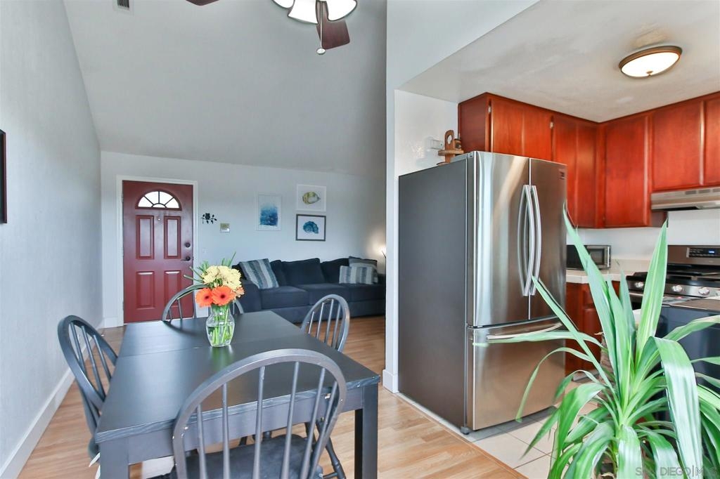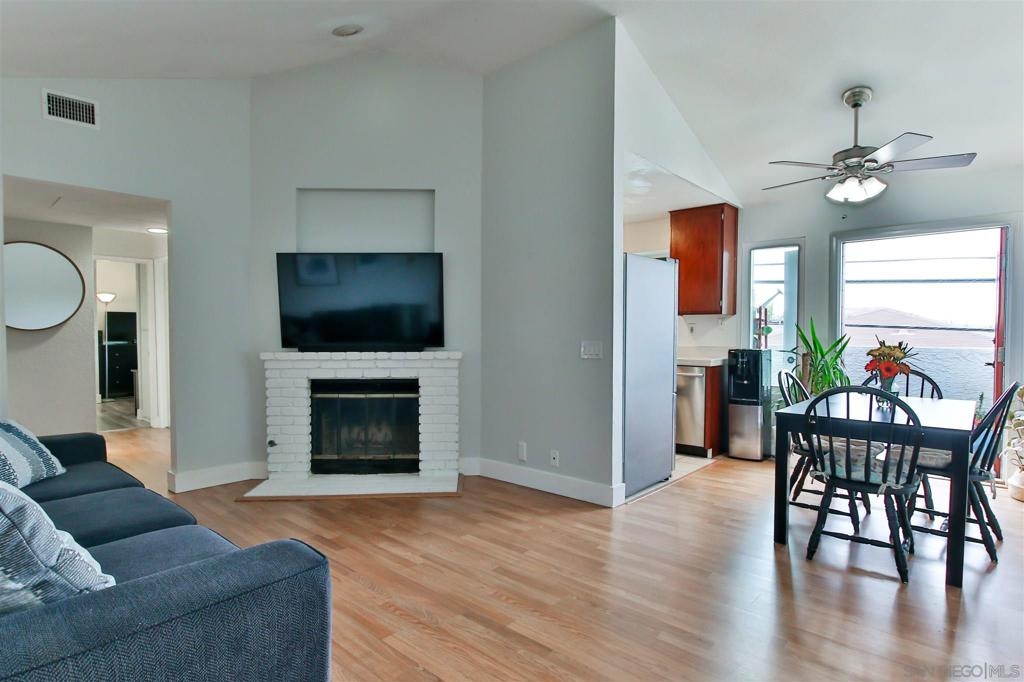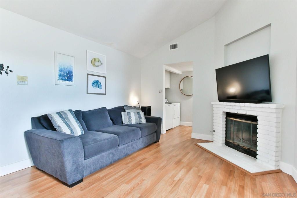 Coastal close in OB! This 2BR / 2BA walk-up, 2nd story, end unit has vaulted ceilings in the living room & both bedrooms! A kitchen garden window, bathroom skylights & sliding/French doors all bring a light & airy feel to the space. Let the fresh ocean air flow via open French doors to your almost condo length balcony space accessible from both the dining area & master bedroom. Newer appliances, including full-size, side by side washer & dryer in the unit! Well-kept complex w/ new roof on building 4344. Mere minutes to the beach and mere steps to Robb Field, Barnes Tennis Center and Dusty Rhodes Park, where there's room to roam for your friends of the furry kind! Near the high point of Montalvo Street, the 14 unit, 2 building Montalvo Villas complex affords you a central location and distant vistas of the mountains/hills to the east and Sea World to the north. Two tranquil fountains and raised deck seating area welcome you inside the gated complex courtyard. Vaulted ceilings and elongated attached balcony (with room for your plants and BBQ grill!) make the entire unit feel spacious, including the bedrooms with room for small home office workspaces. The primary bedroom has a walk-in closet and en suite bathroom. Triple pane windows, laminate floors and white brick facade gas starter fireplace all provide a fresh, clean look. If you're looking for the laid-back/no worries/ocean air/independent-minded/small beach town and its many restaurants, dive bars and overall good vibes feel, welcome to the community of Ocean Beach!! Complex Features: , Equipment: Dryer, Washer Other Fees: 0 Sewer: Sewer Connected, Public Sewer Topography: LL,GSL
