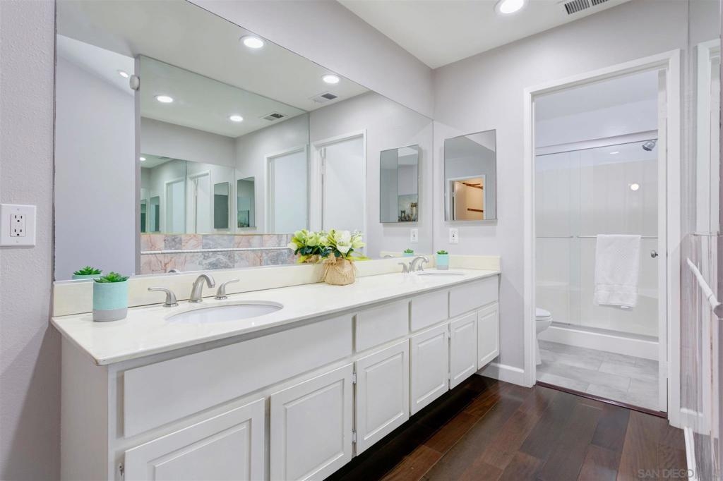 Welcome to Park Point Loma this end unit townhome is located in a prime location of the complex. Just a short distance to Ocean beach, Mission Bay, SeaWorld, restaurants & shopping. This home features hardwood floors, recessed lighting throughout, in-ceiling speakers, ceiling fans, custom shutters, dual pane windows and slider that open out to a private patio off the living and dining area. Newer quartz kitchen countertop and backsplash, wood burning fireplace in the spacious living room. Master bedroom has vaulted ceilings, large walk-in closet & private balcony, master bathroom feature dual sinks! Complex amenities; lap pool, spa, BBQ, clubhouse and multi sport court. Large 2 car attached garage with guest parking across. Complex Features: ,,,,, Equipment: Garage Door Opener, Range/Oven Sewer: Sewer Connected Topography: LL