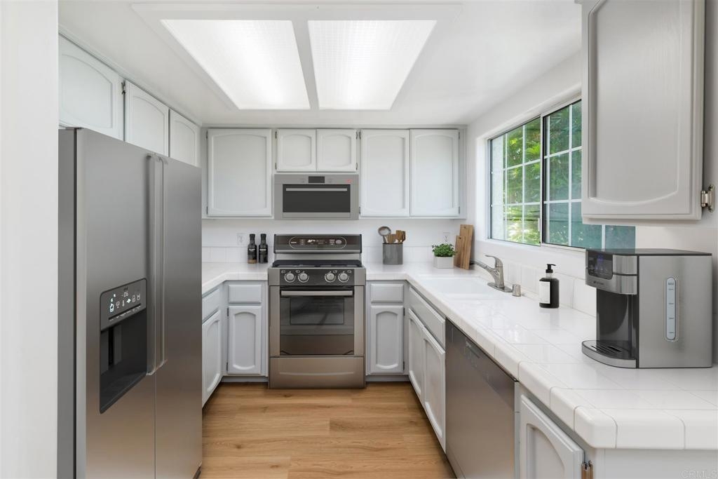 Step into this beautifully remodeled 2-bedroom, 2-bath condo in Poinsettia Villas, an exclusive 7-unit gated complex. Located on the second floor, with no neighboring units, this condo is full of natural light and stunning views of the surrounding area. The abundance of trees gives a peaceful connection to nature and unparalleled privacy all while being walking distance to nearby shops, restaurants, Church, library and Point Loma High School. The recent remodel includes new luxury vinyl flooring, carpet in bedrooms, kitchen appliances, and freshly painted: walls, kitchen and bath cabinetry, creating a welcoming and fresh atmosphere.