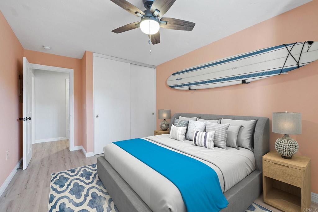 FHA and VA Approved! Don't miss this immaculate 2 bed, 2 bath condo minutes from the beach, with parking, a sizeable master suite and an extra-large balcony. This stunning fully renovated condo showcases high end finishes with a calm, coastal vibe. All newer appliances are included with the sale. The condo has been renovated with custom vanities, high grade tile, waterproof luxury vinyl flooring throughout, and quartz countertops. Your open kitchen and living room are complimented by a large slider onto your balcony, providing a perfect transition between indoor and outdoor living space with tons of natural light. The large primary suite allows for additional bedroom furniture, has 2 full closets, and a custom tiled shower. Everything is renovated in this condo down to the studs, including all plumbing and electrical. Reserved parking spot is feet from the door. Just minutes walk to the OB dog park and very close to the OB pier, beach, pickleball courts, restaurants, the airport, and highway access. Dog friendly! A must see in person!