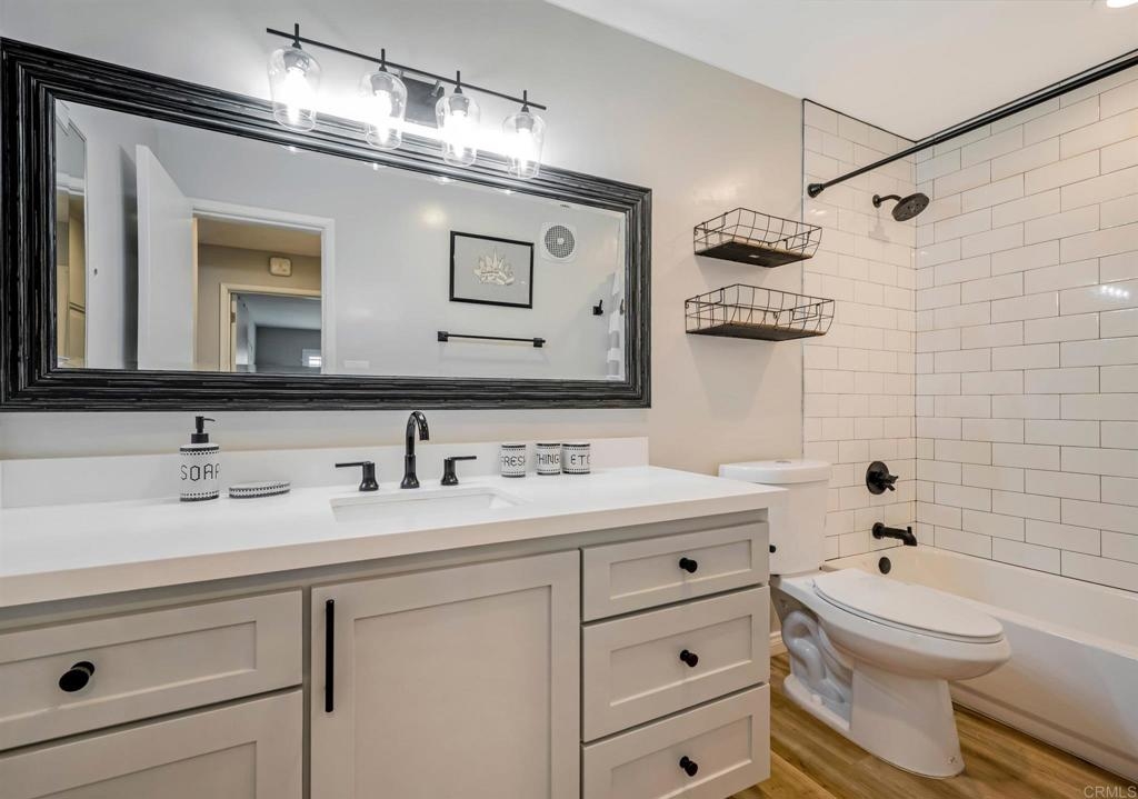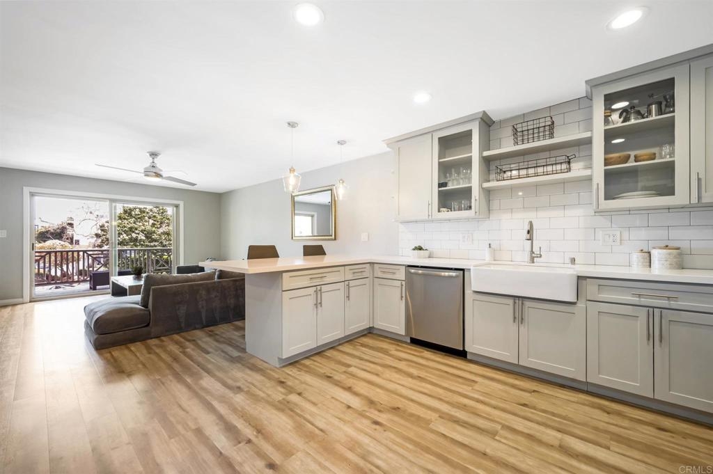 Welcome to Point Loma Villas! You will love this convenient Point Loma location - close to Ocean Beach, Sunset Cliffs, Liberty Station, and all that San Diego has to offer. Throughout the home you will find wood-like hard flooring, recessed lighting, and ceiling fans. The kitchen is updated with modern finishes: quartz counters with a peninsula, a farmhouse sink, subway tile backsplash, custom cabinets, beautiful pendant lights, and stainless steel appliances. Enjoy your morning coffee or a glass of wine on your private balcony. The Master bedroom is spacious with ceiling fan and a walk-in closet. Modern finishes in your bathroom as well. The community features a Clubhouse, Recreational Room, Exercise Room, Billiards, Pool, Sauna, Spa/Hot Tub.