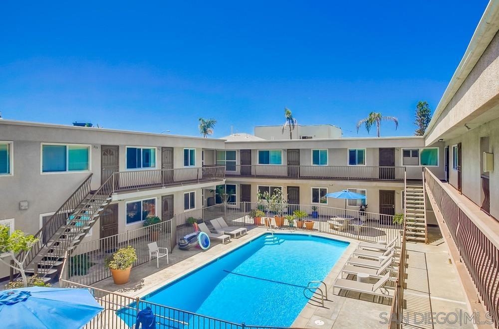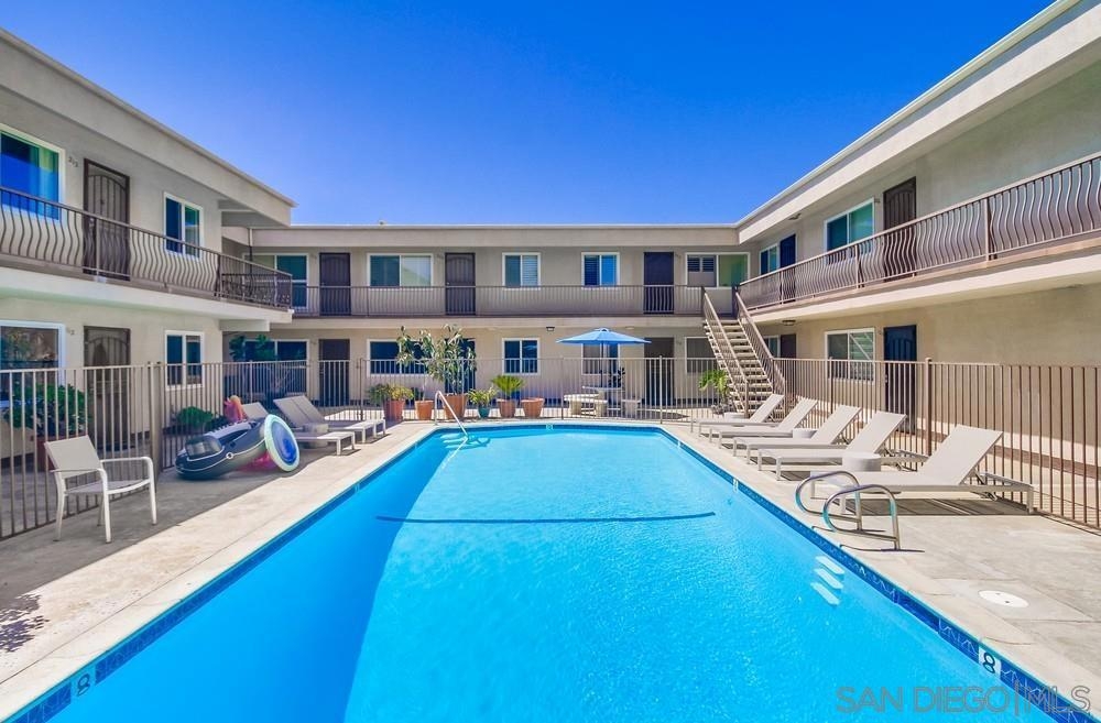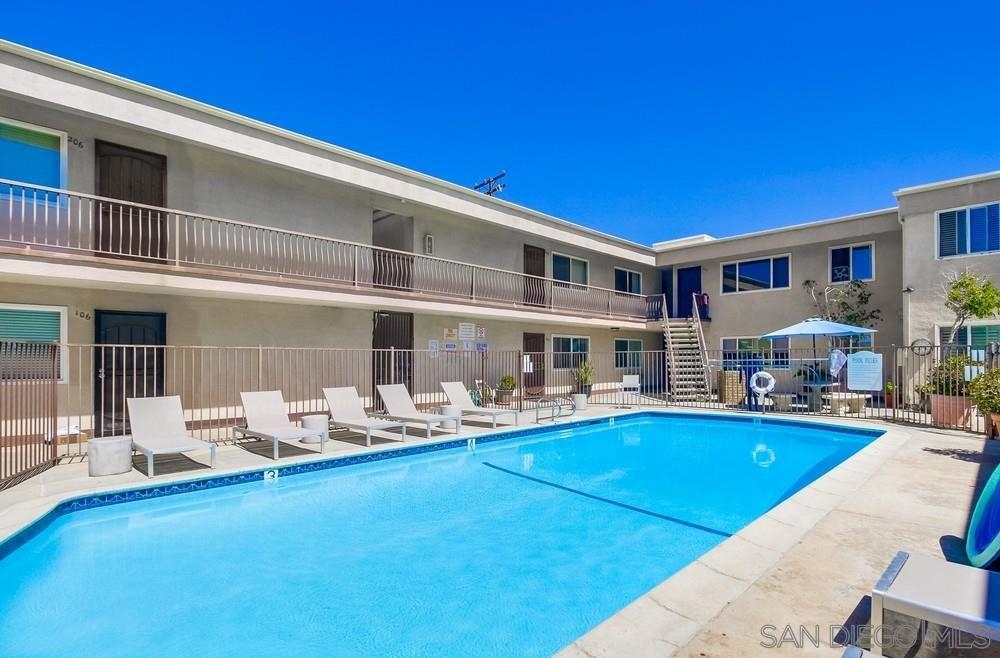 Classic beach condo in South OB! Neat as a pin & ready to call your own, this 2br/1ba top floor end unit is updated & ready to move right in. Updated kitchen & bath, walk-in pantry, tile floors, dual paned windows. Clean complex w/sparkling pool, BBQ, rec. room, exercise room, storage & 2 guest suites. Sea World fireworks & palm tree views and just 1/2 block to the Ocean. Sunsets, surf, great walk score, dining & Newport Ave within blocks. SoCal living at its best!! What are you waiting for?