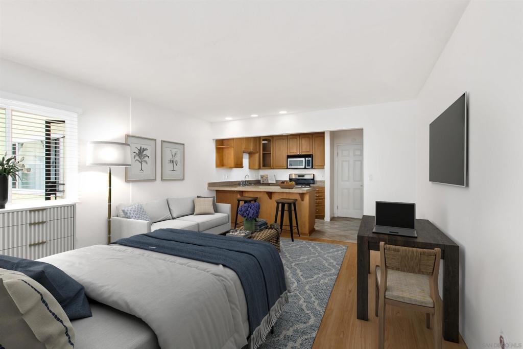 Welcome to Sand And Sea Villas, a boutique complex of only 13 units, ideally located just 1/2 block from the ocean in the heart of Ocean Beach. This charming studio shines with an updated kitchen, complete with granite countertops and stainless steel appliances. The updated bathroom is equally impressive, featuring granite counters, recessed lighting, and a modern design. Large windows flood the interior with natural light, and a ceiling fan helps circulate the mild ocean breeze for ultimate comfort. The community offers fantastic amenities, including a BBQ for outdoor gatherings, a storage locker to keep all your beach toys, assigned parking, and controlled access for peace of mind. Situated on a quiet, serene residential street, Sand And Sea Villas provides the perfect blend of tranquil living and coastal convenience. Whether you're enjoying the comforts of your updated studio or stepping out to the nearby beach, this is the ideal spot to call home. Don't miss out on this rare opportunity in a sought-after location! This is your chance to own a home at the beach for an affordable price! This unit would also make a great rental or investment property.