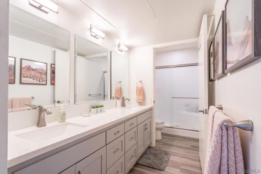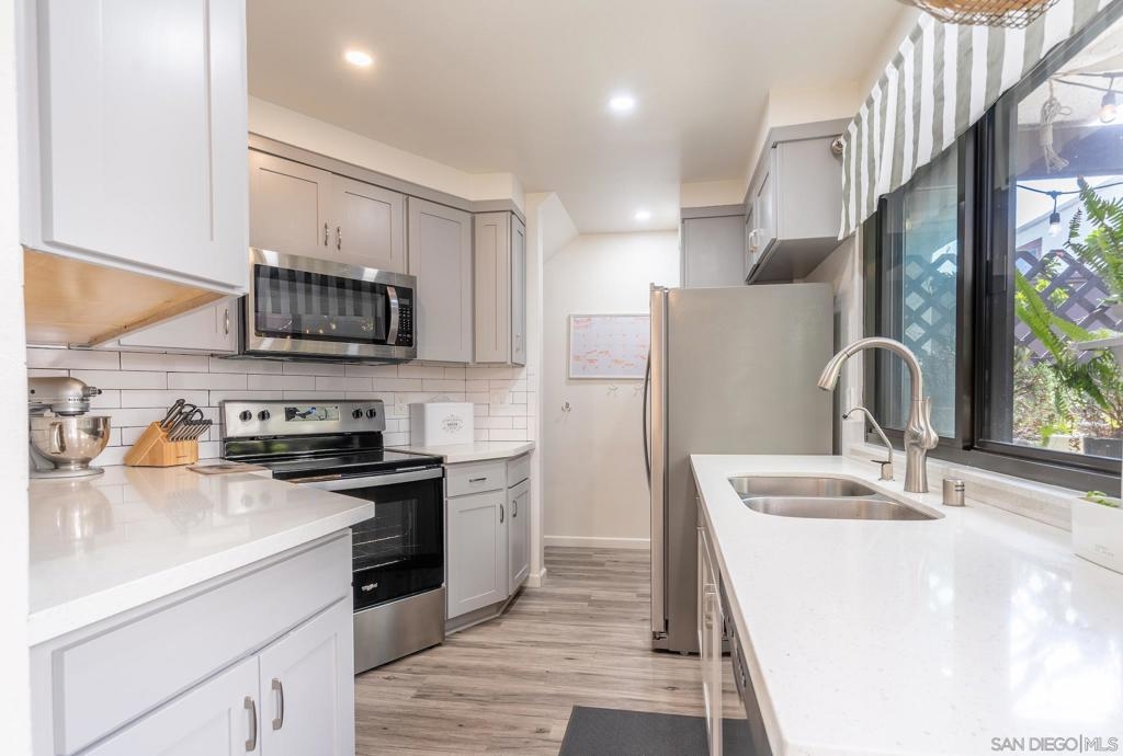 A must see this adorable Plan 4 unit is turn key and ready to go. Beautiful Quartz Counter Tops, Quality Cabinets, Flooring through out, relaxing deck with an area to hang out and BBQ , very spacious 2 car garage attached to the unit along with a washer and dryer. The garage offers plenty of room for storage, bikes, or any other items of use. There is a great amount of Natural Light that flows through this unit, and skylights to boost. Also, having 2 1/2 bathrooms add an extra luxury. The HOA offers a lot with a club house, pool, Basketball Ct., Tennis Cts., and a toddler play area. Equipment: Dryer,Garage Door Opener, Washer Sewer: Sewer Available, Sewer Connected Topography: LL