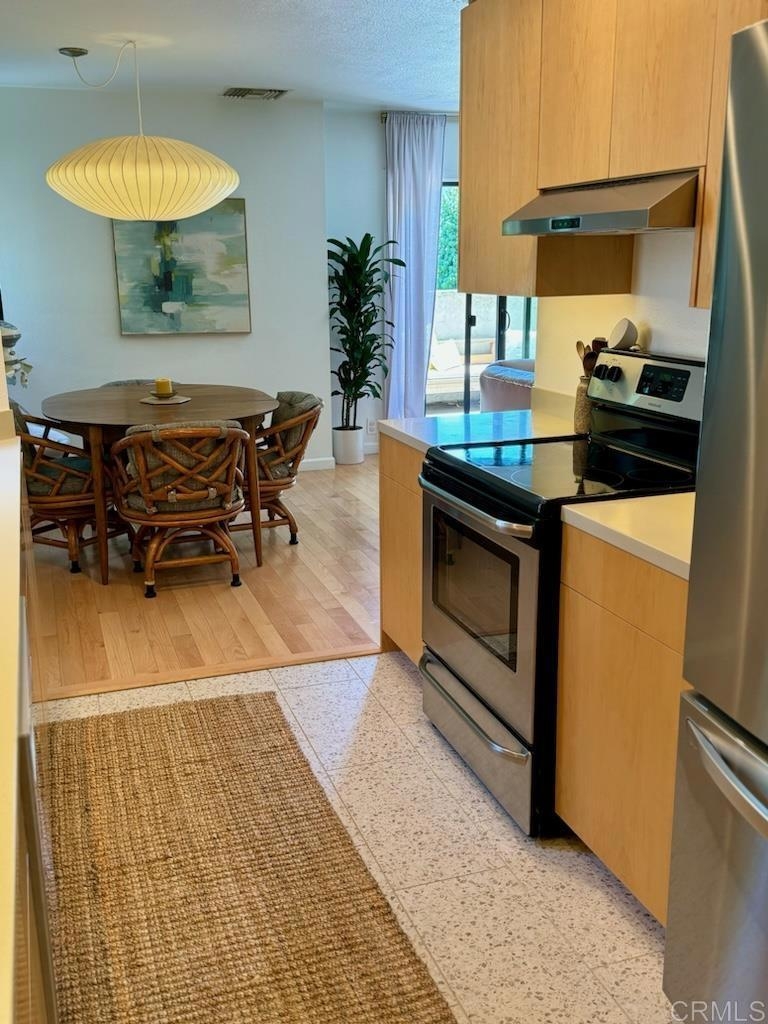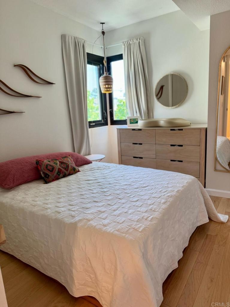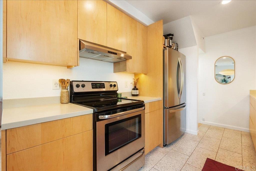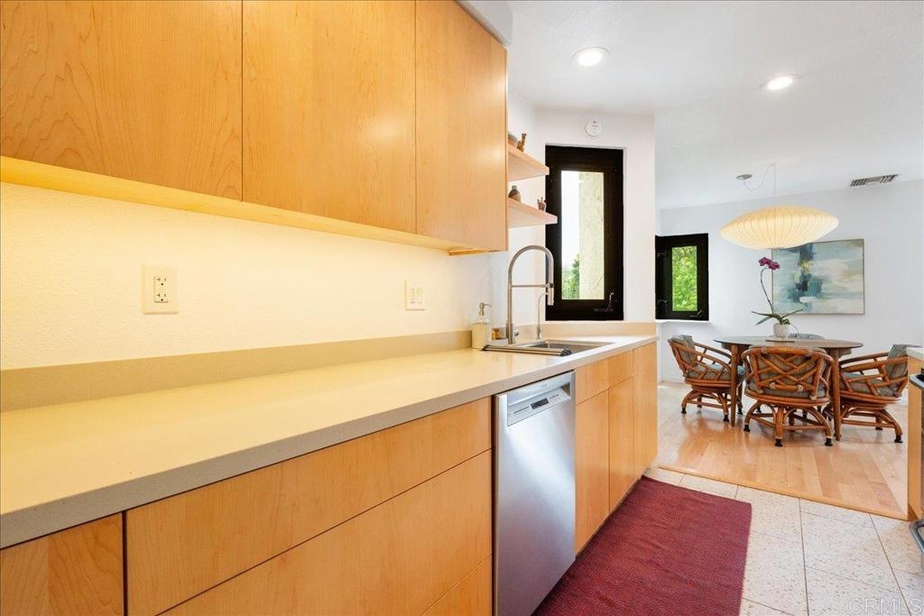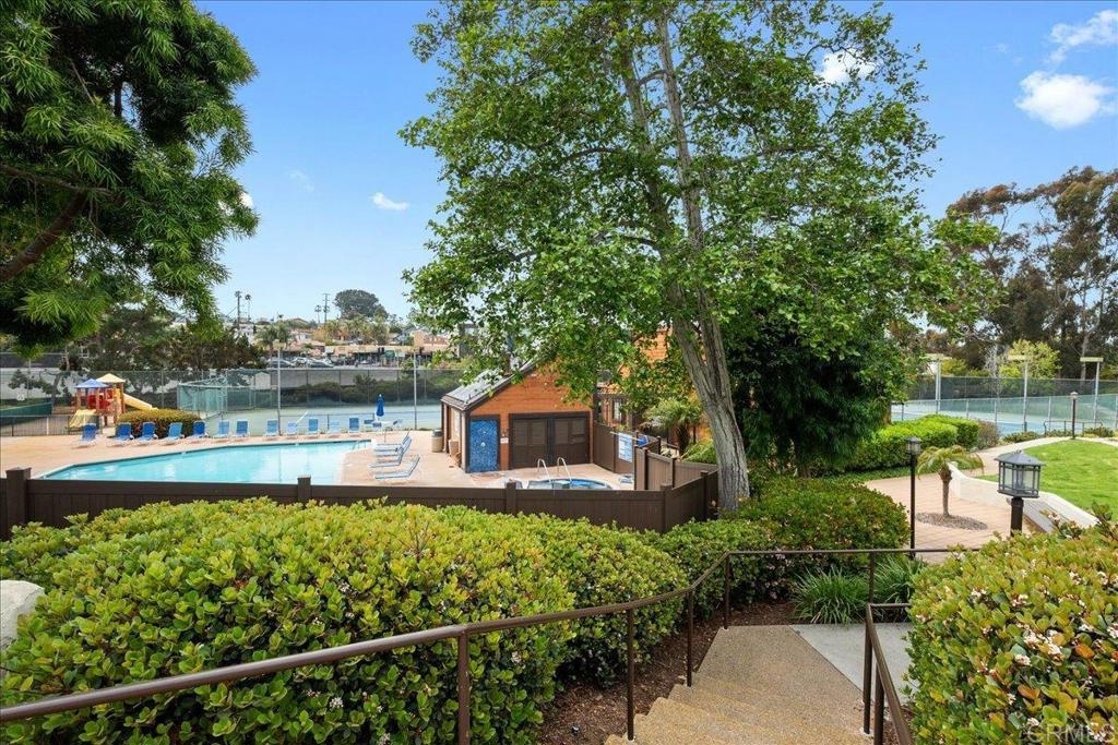 Welcome to this exceptional townhome! Boasting 2 bedrooms and 1.5 bathrooms, this light-filled residence offers a comfortable living space. With custom cabinetry in the remodeled kitchen, and solid maple hardwood flooring, elegance abounds. Enjoy scenic views of the neighborhood and canyon from the balconies and the tranquility of being an end unit. There is a walking paved path behind the townhome along the canyon. This is a bike friendly area with bike paths for cycling enthusiasts. Notable upgrades include Quieter Home Program double-paned windows for enhanced sound insulation, a Bosch Bova Series 2.0 Heat Pump with 3 Ton A/C for optimal climate control, and LG and Bosch appliances for convenience and style. The Pelican PSE 1800 Whole House Water Filter-Softener provides purified water. Community amenities include a clubhouse with a billiard table and a lounge area, perfect for hosting parties. Take advantage of the pool, spa, playground, basketball court, and tennis and pickleball courts. With a security guard on duty 24/7, safety is ensured. New roof (2021) and garage door (2016) add further value. Don't miss this opportunity to own this remarkable townhome in a great location! Additional details: Easy freeway access to 8 & 5 Point Loma High School - In Top Best Magnet High Schools in CA Ocean Beach Elementary - #8 Niche Standout ES in CA 7min walk to Michelin honored “Bib Gourmand” awarded restaurant Cesarina 7min walk to Stella Jean ice cream and Pop Pie restaurant and coffee shop 8min walk to TikTok famous P.L. Bagels best bagels in San Diego 8min walk to Christy’s Donut Shop, Cotijas, Ortiz Taco Shop, and Stumps Market 9min walk to Point Loma Public Library 9min drive to Ocean Beach access, famous Sunset Cliffs, and the bayside 8min drive to Liberty Station - San Diego's largest arts and dining district housing museums, galleries, artist studios, restaurants, and creative retailers in 38 historic buildings