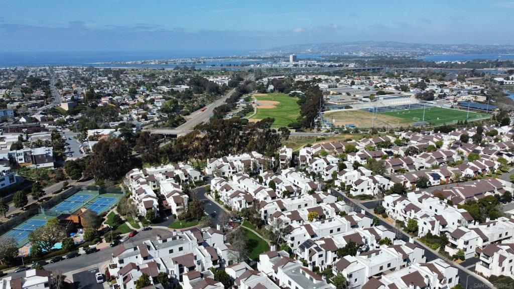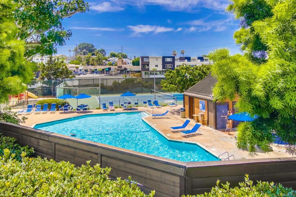 Pride of ownership in this desirable plan three, 2 bedroom, 1.5 bath end-unit (great location) in the coveted Sea Colony community. Lots of natural light, private patio, views from the primary bedroom, hardwood flooring, dual pane windows, central AC & heat, 2-car garage with laundry, etc. HOA includes pool, clubhouse, playground, spa, tennis courts and plenty of parking for guests. Close to grocery store, coffee shops, restaurants, beach and Liberty Station! VA and FHA Approved!