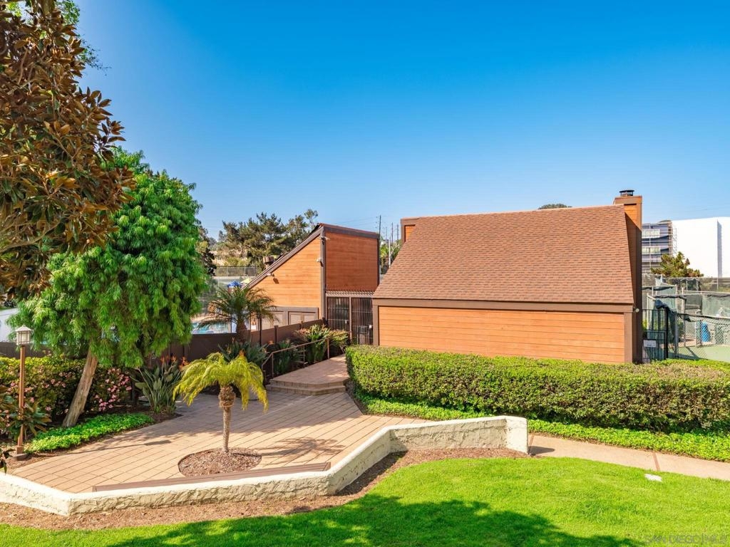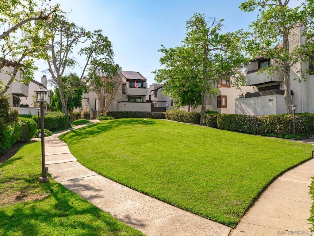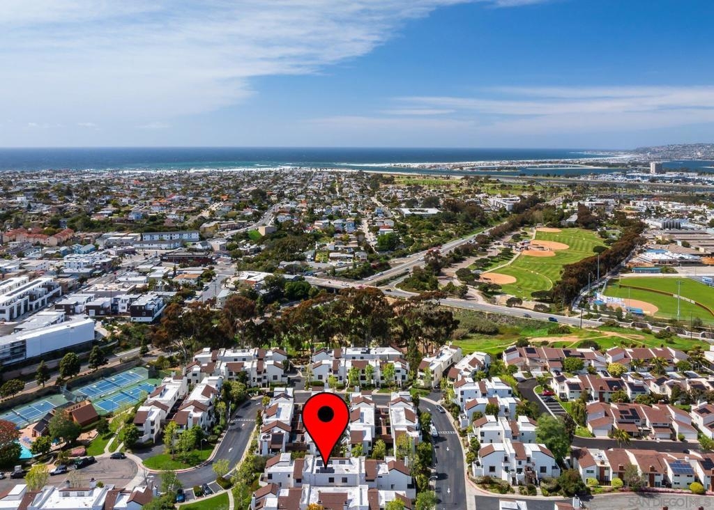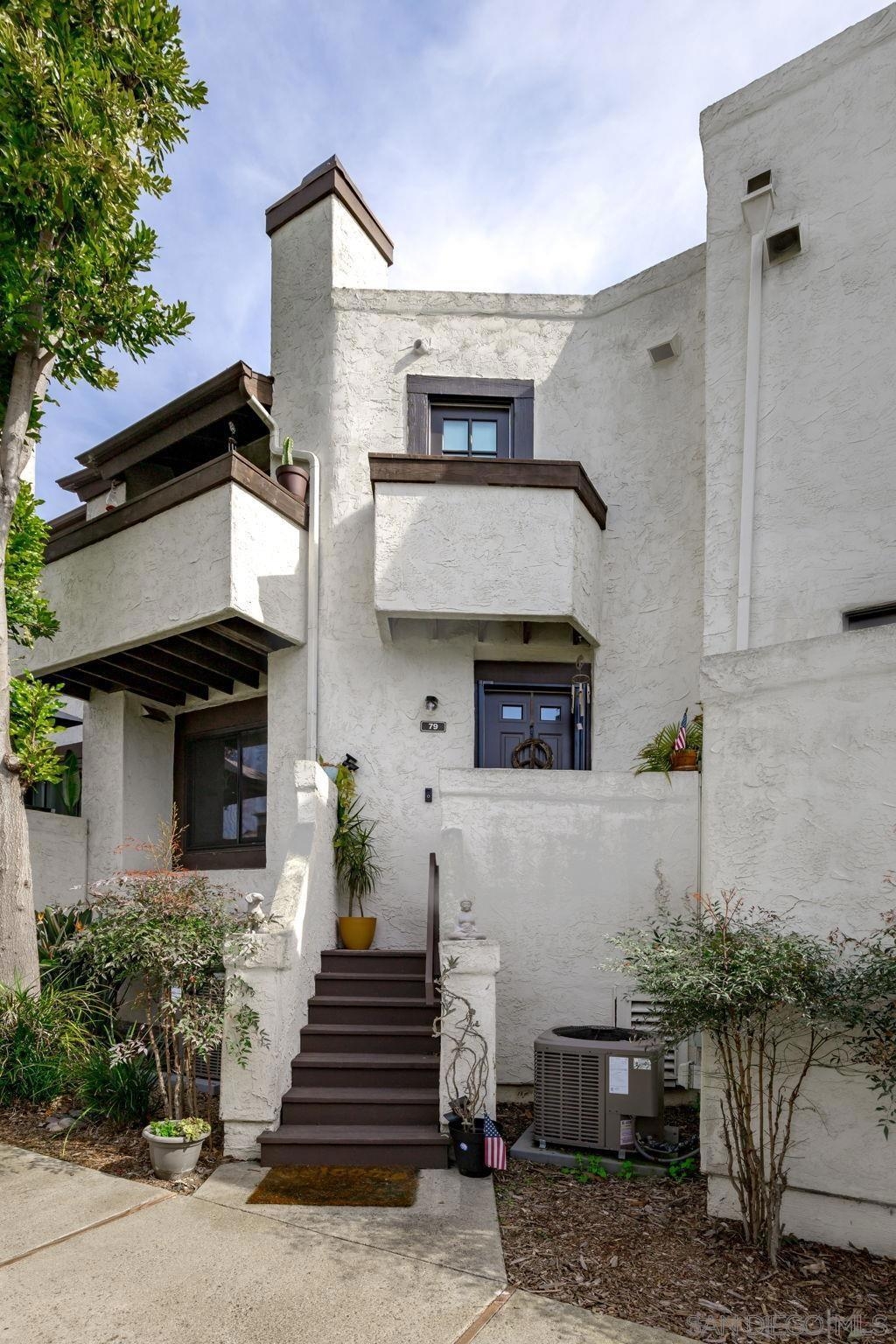 Embrace the ultimate San Diego summer in this exceptional Sea Colony townhome, where comfort meets conscious living. Stay cool and save big with fully paid-off solar panels, ensuring significantly lower utility bills. This upgraded home offers a blend of coastal charm and modern convenience. Imagine a vibrant, walkable lifestyle central to Ocean Beach and Point Loma; favorite eateries, charming cafes, and sun-drenched beaches are just a walk or a leisurely bike ride away. Inside, discover a meticulously upgraded interior. Beyond the solar savings, enjoy pure, clean water from an upgraded Culligan water system. The custom kitchen boasts stainless steel appliances, sleek quartz countertops, and wood cabinetry. Seamlessly entertain on your private deck, complete with a pass-through window from the kitchen and a unique granite counter, perfect for al fresco dining. As the day unwinds, retreat to one of two upstairs balconies and savor breathtaking sunsets over the treetops. Organization is effortless with custom closets and an attached two-car garage with custom storage. Additional enhancements include luxurious vinyl plank flooring, crown molding, recessed lighting, ceiling fans, dual-pane windows, and air conditioning. HOA includes Common Area Maintenance, Trash, Water, Security Guard & more, with access to fantastic amenities: a sparkling pool, inviting clubhouse, sports courts, and enhanced security. Perfect for first-time, conventional, FHA, and VA buyers, this home welcomes all scenarios.