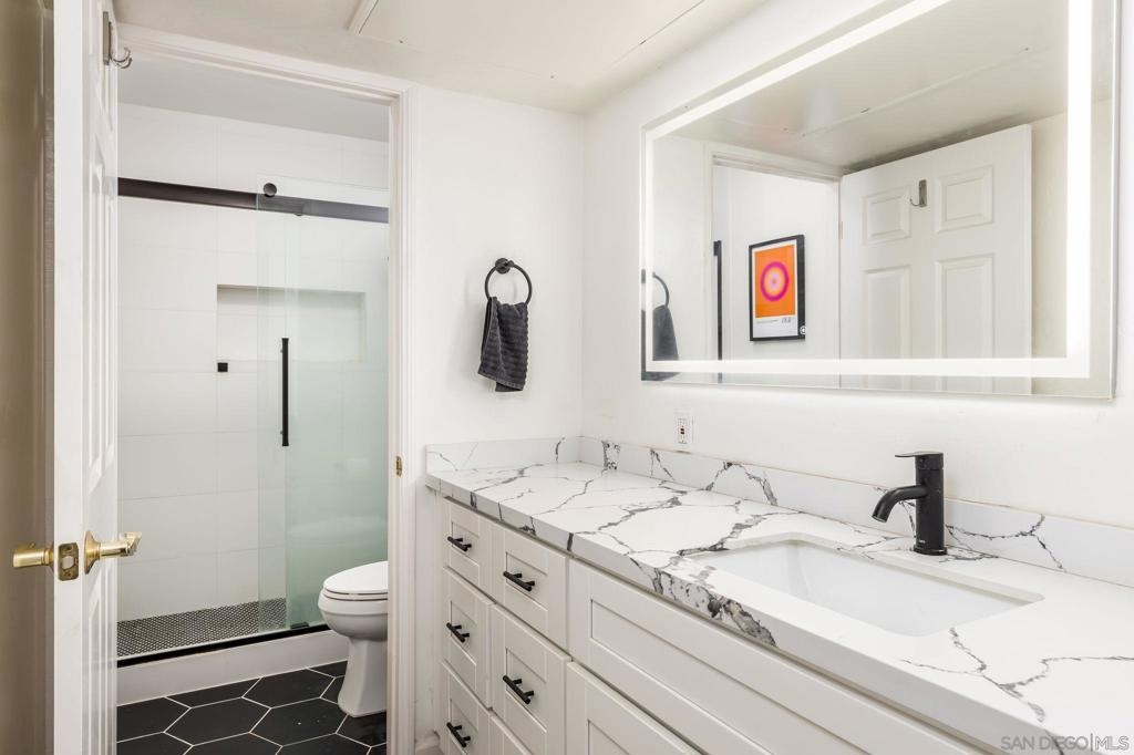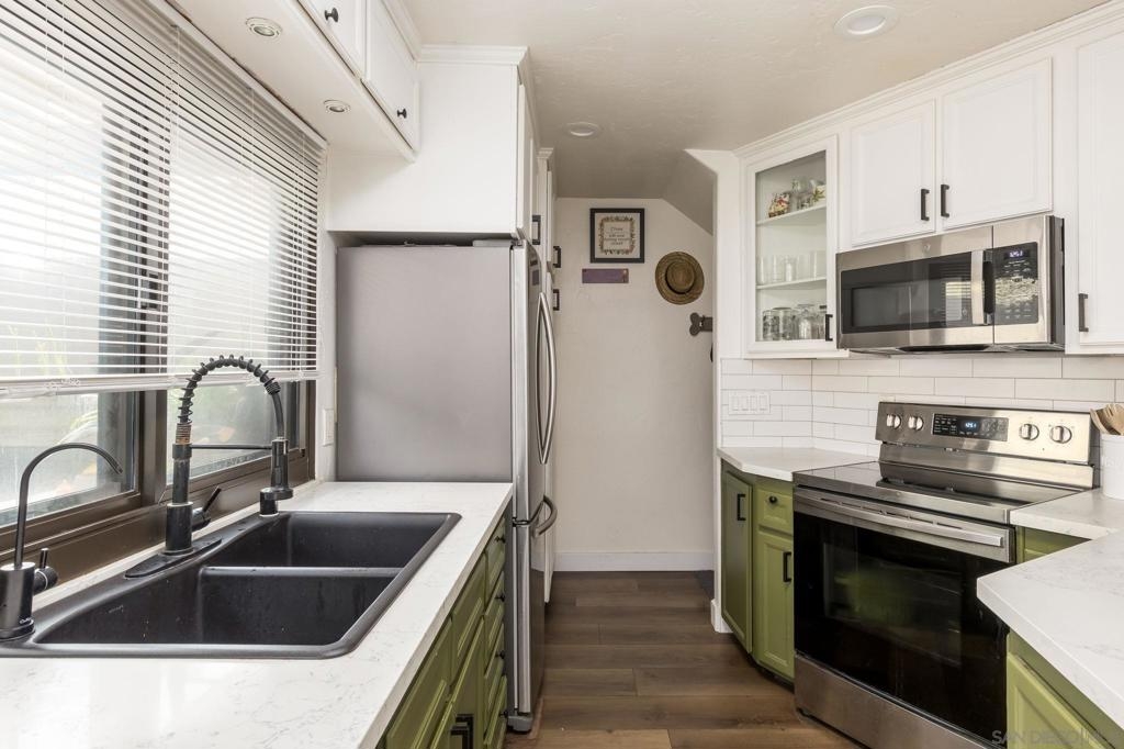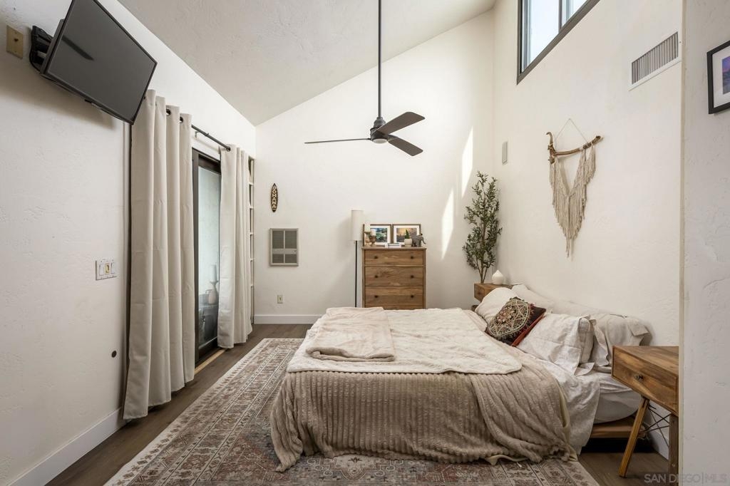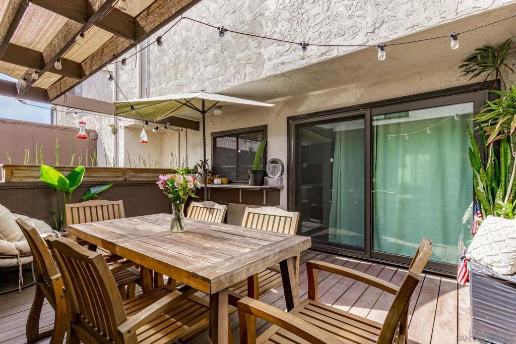 Embrace the ultimate San Diego summer in this exceptional Sea Colony townhome, where comfort meets conscious living. Stay cool and save big with fully paid-off solar panels, ensuring significantly lower utility bills. This upgraded home offers a blend of coastal charm and modern convenience. Imagine a vibrant, walkable lifestyle central to Ocean Beach and Point Loma; favorite eateries, charming cafes, and sun-drenched beaches are just a walk or a leisurely bike ride away. Inside, discover a meticulously upgraded interior. Beyond the solar savings, enjoy pure, clean water from an upgraded Culligan water system. The custom kitchen boasts stainless steel appliances, sleek quartz countertops, and wood cabinetry. Seamlessly entertain on your private deck, complete with a pass-through window from the kitchen and a unique granite counter, perfect for al fresco dining. As the day unwinds, retreat to one of two upstairs balconies and savor breathtaking sunsets over the treetops. Organization is effortless with custom closets and an attached two-car garage with custom storage. Additional enhancements include luxurious vinyl plank flooring, crown molding, recessed lighting, ceiling fans, dual-pane windows, and air conditioning. HOA includes Common Area Maintenance, Trash, Water, Security Guard & more, with access to fantastic amenities: a sparkling pool, inviting clubhouse, sports courts, and enhanced security. Perfect for first-time, conventional, FHA, and VA buyers, this home welcomes all scenarios.