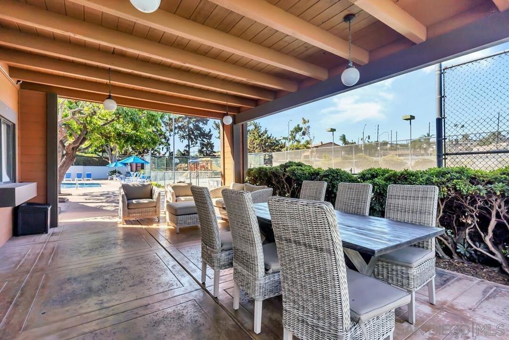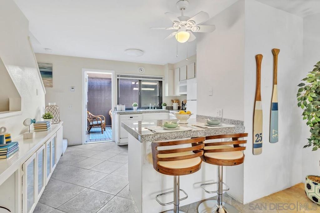 Welcome home to this lovely Plan 2 Sea Colony townhome. Sea Colony is VA APPROVED!!! Enjoy 2 bedrooms and 1 bath in 832 SF of space that includes an open floor plan in the living space. Like to spend time outside? The large 150+ SF patio off the kitchen is perfect for relaxing or entertaining. The kitchen offers granite tile counter tops with added storage and countertops unique to this home. Newer windows, doors and AC have been installed via the Quieter Homes Program. Have extra toys and items that need storing? The 1 car direct access private garage with laundry is waiting for you. Sea Colony offers many amenities such as a pool, spa, tennis courts, pickleball courts, tot lot and club house and is just a quick bike ride to dog beach, shopping on Newport and Sunset Cliffs. Just a short walk to a grocery store, bakery, PL Library and restaurants. Easy access to SD Int’l Airport, Downtown San Diego, Petco Park and Humphreys By the Bay. Photos are from a previous listing when staged.
