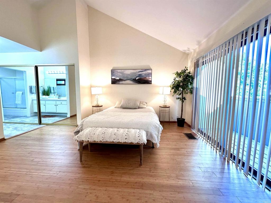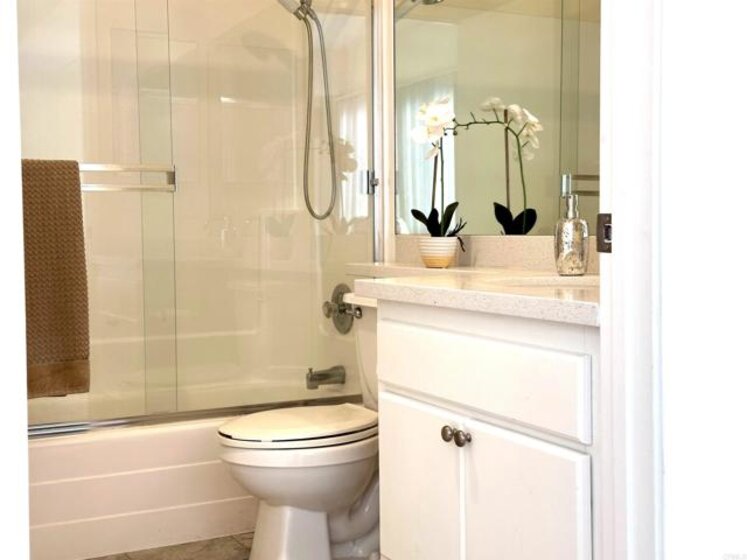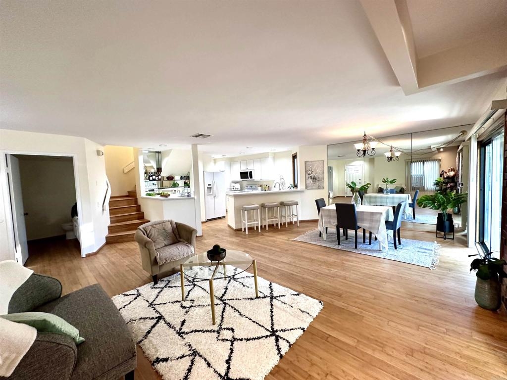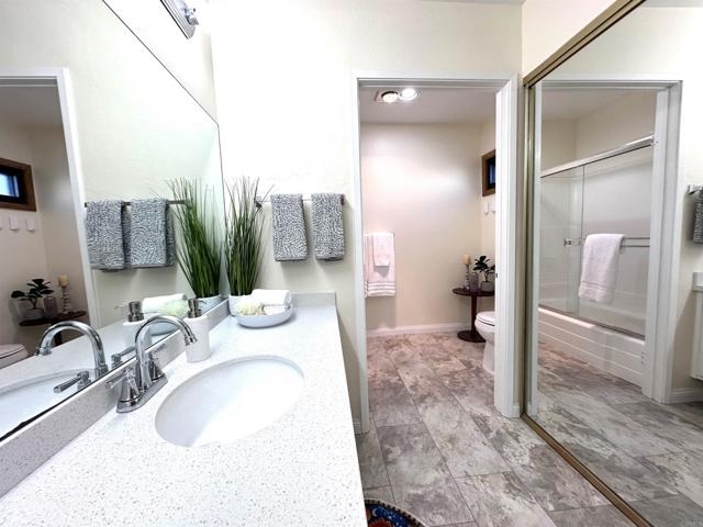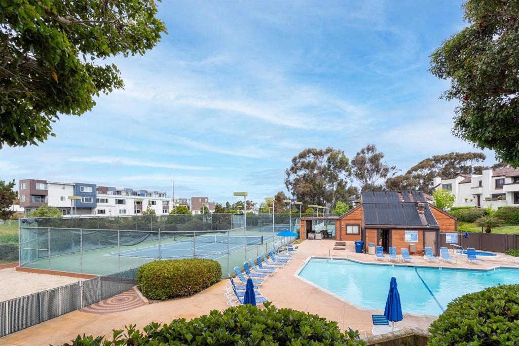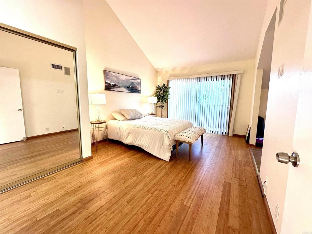 Rarely available Largest Unit 5 Plan! Remodeled and Back on the Market. Refreshed Solid bamboo flooring through out. New Paint. Refaced Cabinets. New quartz kitchen counter tops and bathroom vanity tops. AC serviced with new Freon, Wired for Surround Sound. New angle stops, new private unit emergency water shut off and pressure regulator, new sinks and new faucets throughout. New Waterproof Laminate tile look flooring in the upstairs bathrooms. This is a great community to live in. There are so many benefits to living here with the community pool, jacuzzi, tennis courts, club house, sauna, playground and centrally located. Light and Bright with awesome breezes! All windows were replaced by the quieter home project with Dual Windows! The homes lives like a single family home. The primary bedroom is over sized with room for an office or sitting area. Each room has it's own connected full bathroom. The garage is also oversized with an upgraded double insulated garage door! Only the 5 plans have the oversized garages. It was previously used as an office. You are just minutes from the beach. FHA and VA approved complex! Private security guard on site for added safety! Some photos are from previous staging.
