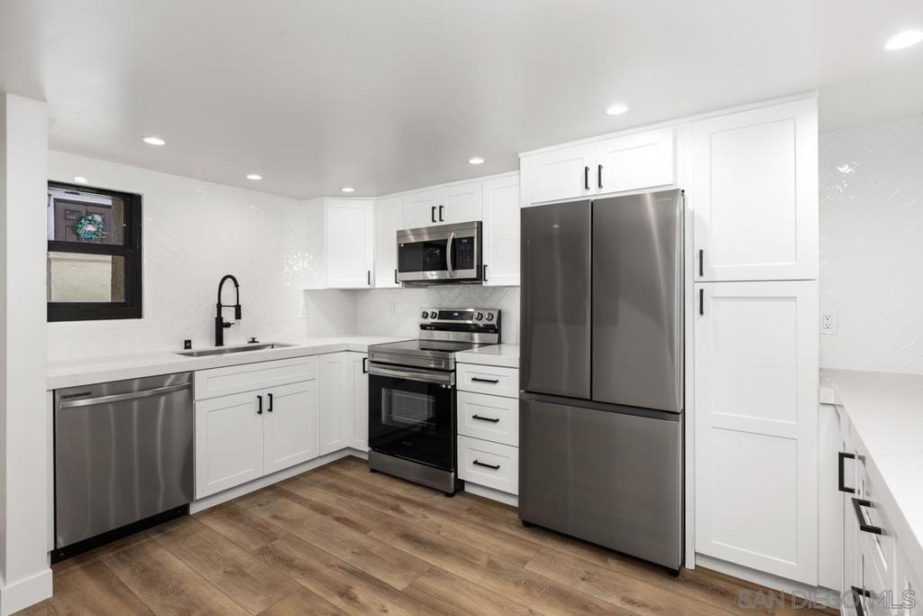 A rare opportunity to own a beautifully remodeled townhome in Sea Colony! This oversized one bedroom with office area has vaulted ceilings and a large open concept kitchen with upgrades galore! This home boasts new luxury vinyl plank flooring throughout, quartz countertops, New White Shaker cabinets, New SS appliances, and fully remodeled bathroom. This home also includes a large one car direct access private garage with laundry hookups. Newer windows, doors and AC have been installed via the Quieter Homes Program. Sea Colony offers great amenities including a pool, spa, tennis courts. Great location within walking distance to shops, restaurants, and easy access to freeways.