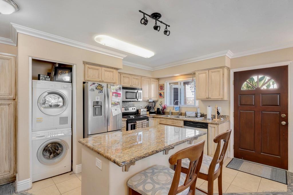 Charming Condo located in Ocean Beach! Enter the property to find an open floor plan with laminate flooring throughout! The property boasts: A/C, In-Unit Washer/Dryer, an open kitchen with stainless steel appliances, crisp white cabinetry and a kitchen island with bar seating, a dining area in the living room, a mirrored closet and a cooling/heating wall unit in the bedroom, and so much more! The condo also comes with a garage, which has built-ins and surf racks, furthest to the left if you're on West Point Loma facing the building and and two driveway parking spaces! The condo is located near Ocean Beach, Sea World, Mission Beach, and great shopping and restaurants. Don't wait -- book a tour today! Equipment: Dryer,Garage Door Opener, Washer, Water Filtration Sewer: Public Sewer Topography: GSL
