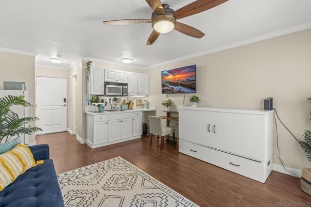 Enjoy year-round summer at this resort-like complex, just steps from the beach, restaurants and nightlife! This adorably updated FULLY FURNISHED entry level condo is one of the larger studios in the building and offers a remodeled kitchen, bath (with tub) and full size fridge. The end unit location is prime because you share only one wall, plus it's close to the lobby entrance and furthest from the pool (which equals quieter) and has an enclosed, shaded patio with tons of privacy where no one can see in (uncommon for this complex). The nearby elevator takes you up one floor to an AIR CONDITIONED gym and rec room with pool table and TV. The community pool is heated and looks out to the marina where there are lounge chairs and seating provided, plus a fire pit. There's also a bike storage locker offered to residents. Perfect purchase for an investor who wants to short or mid-term rent (minimum of 30 days) or own it as a second vacation home. The unit can also be sold vacant for owner occupied!