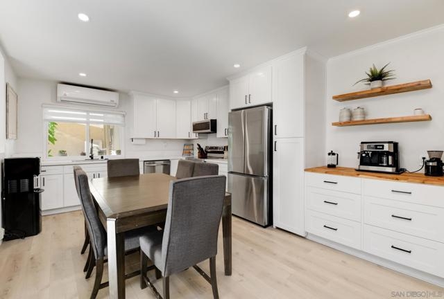 Completely upgraded 3 bed,1.5 bath townhouse, end-unit in Mission Valley! Gorgeous move-in ready townhome with attached deck, laundry room, brand new A/C & heating, brand new dual pane windows, custom cabinets with pantry wall and coffee station, quartz countertops, and high-end stainless steel appliances! Come fall in love with this open concept home. A large living room with a beautifull brick fireplace with wooden mantle and shelving over-looking the open greenbelt out your front door. Second floor features 3 large bedrooms: a large primary bedroom with ample closet space and custom shelving; 2 additional bedrooms with large closets overlook the green areas; large bath with dual sinks and full size bathtub, and bonus attic space for storage with pull down stair access. An additional half bath is located downstairs for convenience. This unit has it all! Centrally located, minutes SDSU, Fashion Valley, Friars Rd and to all Mission Valley has to offer. Truly a must see.