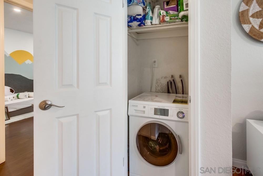 Bright and welcoming upper unit with new dual-pane windows, a newer kitchen, and luxury vinyl plank floors. A rare find in this community, it already has an IN-UNIT WASHER/DRYER COMBO! Relax on your spacious balcony and enjoy the pool, public barbecue, several HOA-maintained fruit trees (guava, banana, apple, and more), plus a small garden. FHA/VA approved!