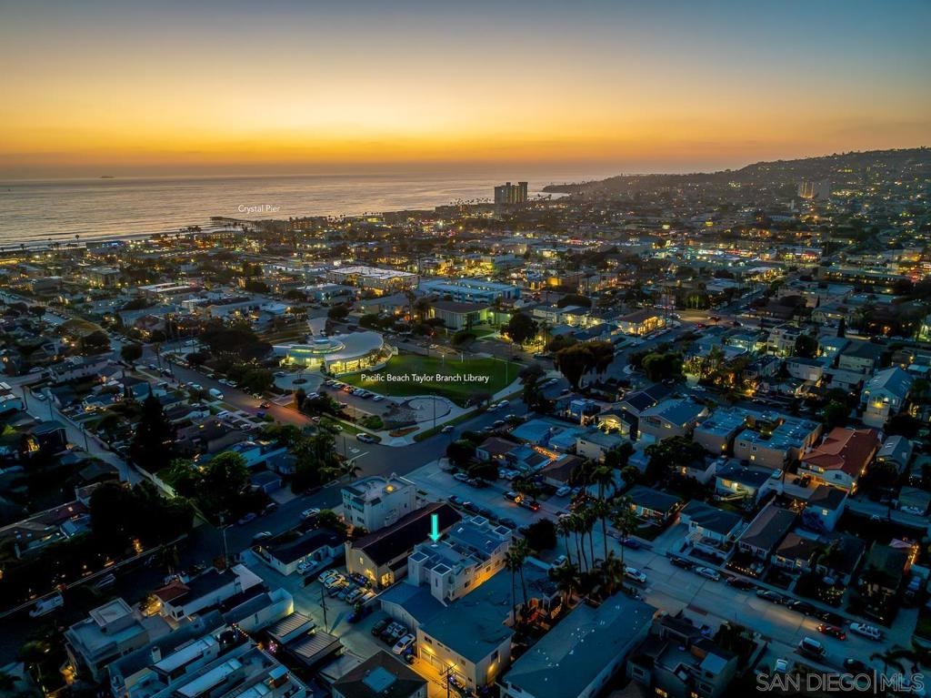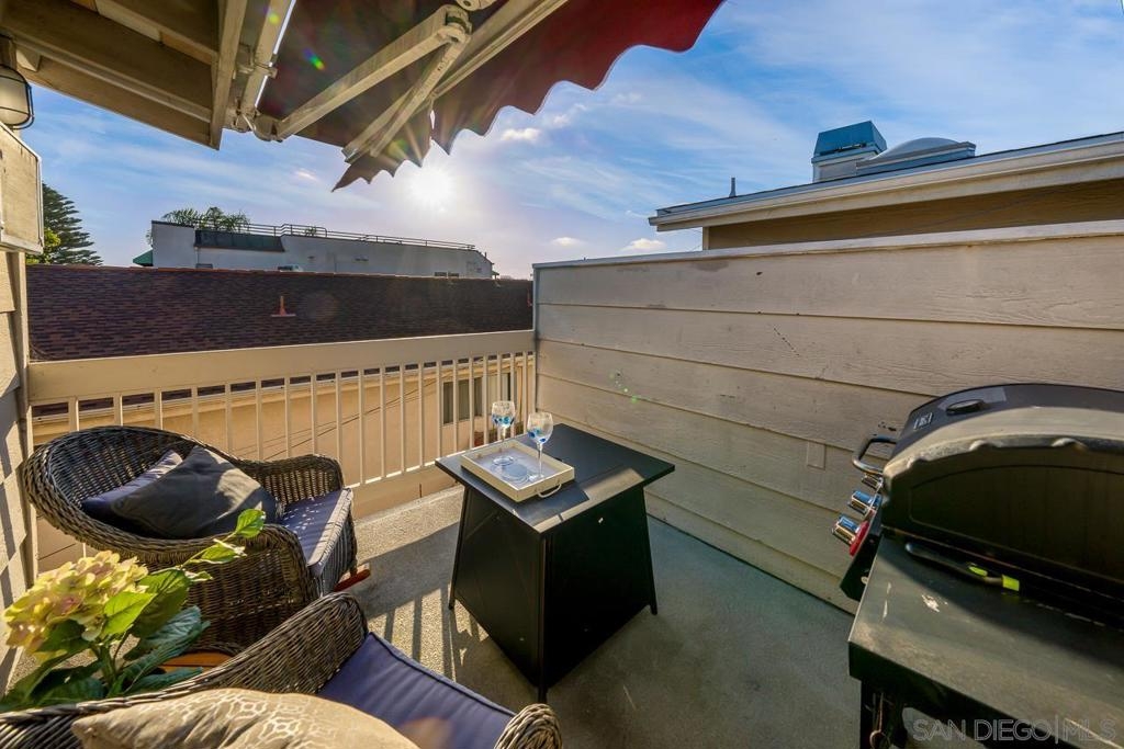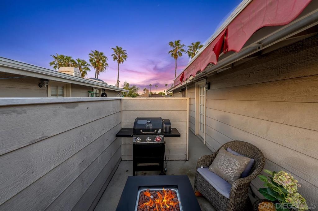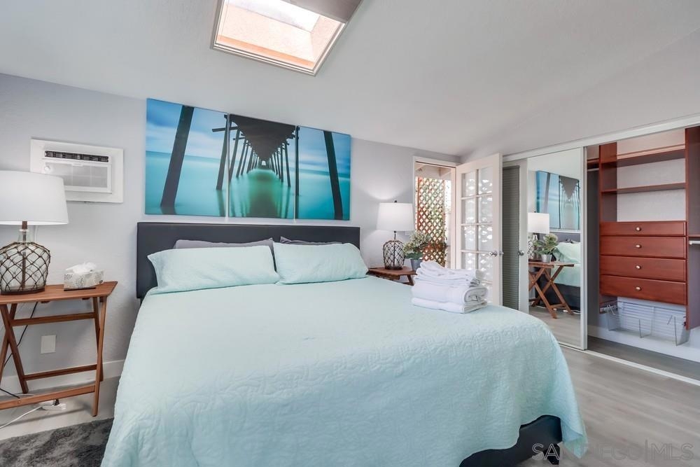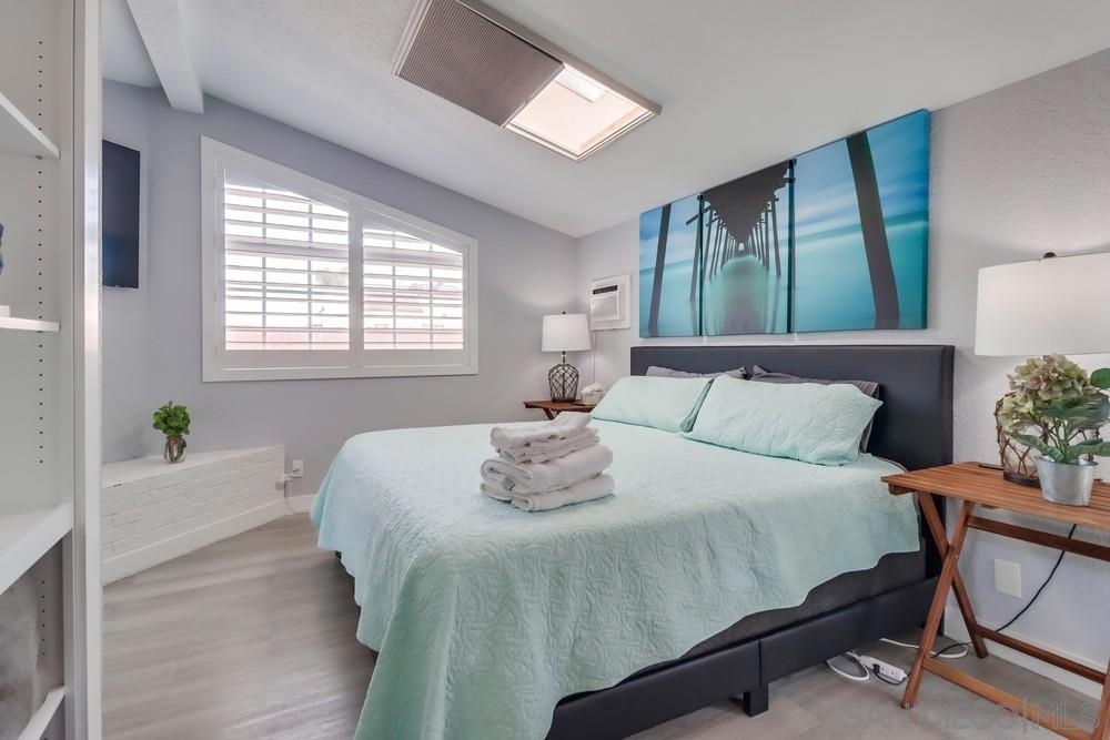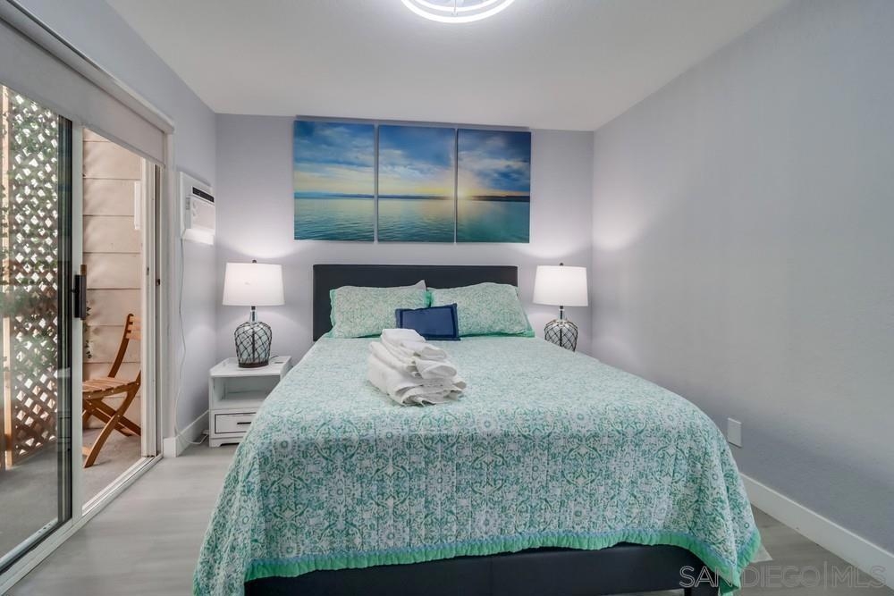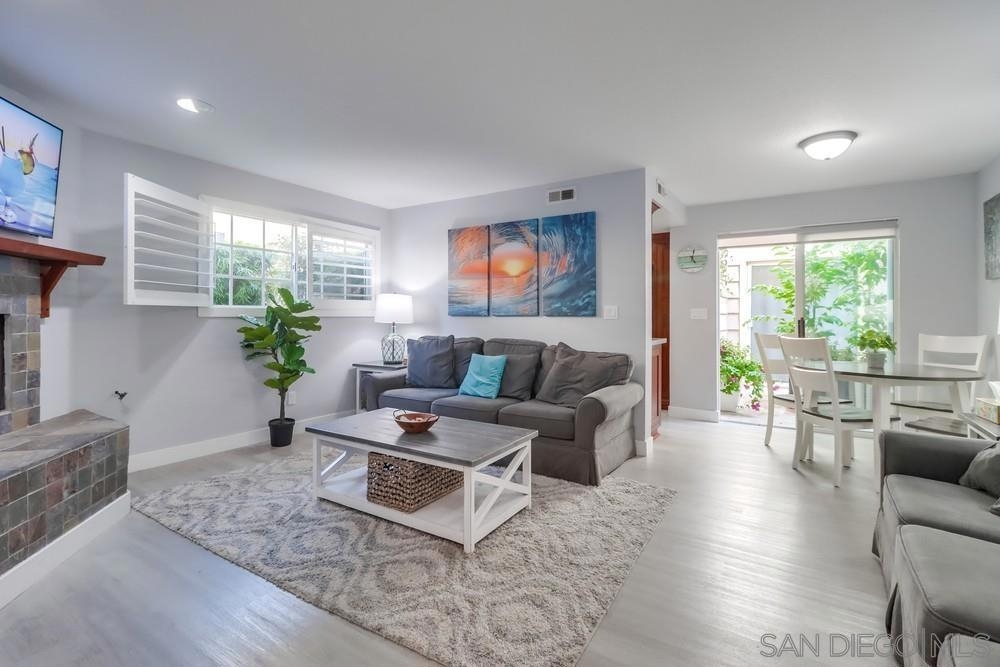Exterior and common areas have been recently enhanced, adding to the allure of this ideal beach home. Perfectly positioned just steps away from both the bay and the beach, this property offers an exceptional opportunity for those looking for a primary residence, a second home, or a lucrative investment. With convenient air conditioning for year-round comfort and in-unit laundry, this residence is a favorite on Airbnb, generating significant income and providing an attractive option for offsetting costs with rental revenue. The master suite occupies its own floor, featuring a serene private patio, a luxurious spa-style bathroom, and a warm, inviting fireplace. This townhouse also includes a private balcony off the second bedroom and a common area garden adjacent to the kitchen, creating a seamless blend of indoor and outdoor living. With only four units in the building, enjoy an exclusive living experience. Parking is a breeze with a dedicated carport and a compact garage, perfect for a compact car, motorcycle, beach gear, or additional storage. The home is conveniently near attractions such as Crystal Pier, Belmont Park, and the surfing hotspots of La Jolla. Enjoy the convenience of walking to local restaurants, coffee shops, markets, and vibrant nightlife, all while residing in a peaceful enclave of the highly sought-after Pacific Beach area.