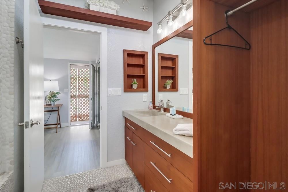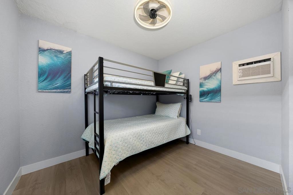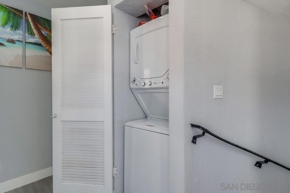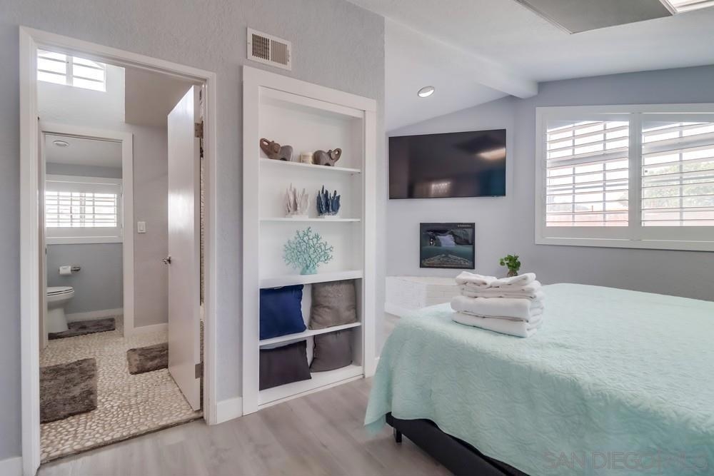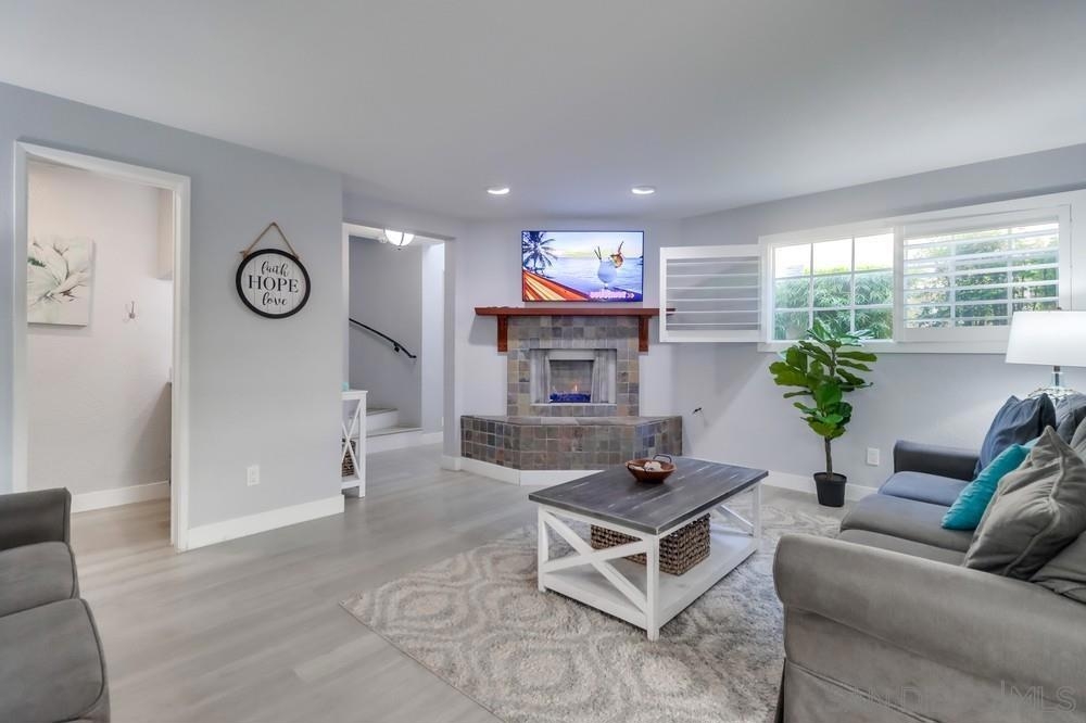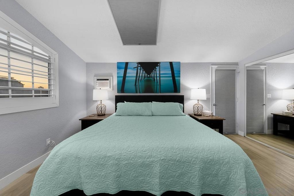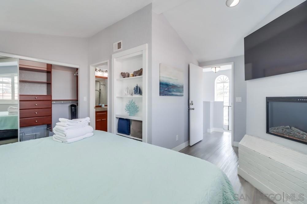 Exterior and common areas have been recently enhanced, adding to the allure of this ideal beach home. Perfectly positioned just steps away from both the bay and the beach, this property offers an exceptional opportunity for those looking for a primary residence, a second home, or a lucrative investment. With convenient air conditioning for year-round comfort and in-unit laundry, this residence is a favorite on Airbnb, generating significant income and providing an attractive option for offsetting costs with rental revenue. The master suite occupies its own floor, featuring a serene private patio, a luxurious spa-style bathroom, and a warm, inviting fireplace. This townhouse also includes a private balcony off the second bedroom and a common area garden adjacent to the kitchen, creating a seamless blend of indoor and outdoor living. With only four units in the building, enjoy an exclusive living experience. Parking is a breeze with a dedicated carport and a compact garage, perfect for a compact car, motorcycle, beach gear, or additional storage. The home is conveniently near attractions such as Crystal Pier, Belmont Park, and the surfing hotspots of La Jolla. Enjoy the convenience of walking to local restaurants, coffee shops, markets, and vibrant nightlife, all while residing in a peaceful enclave of the highly sought-after Pacific Beach area.