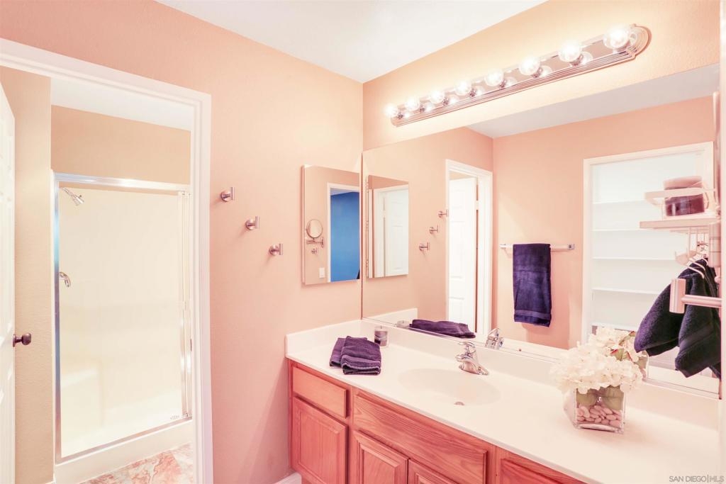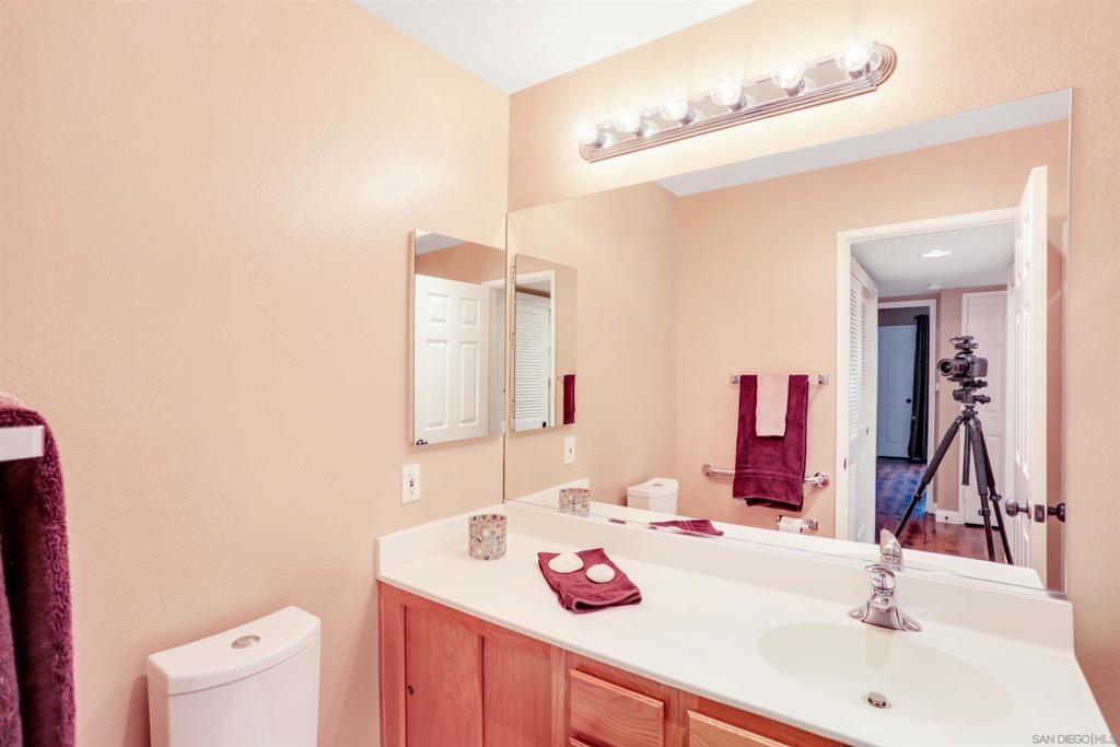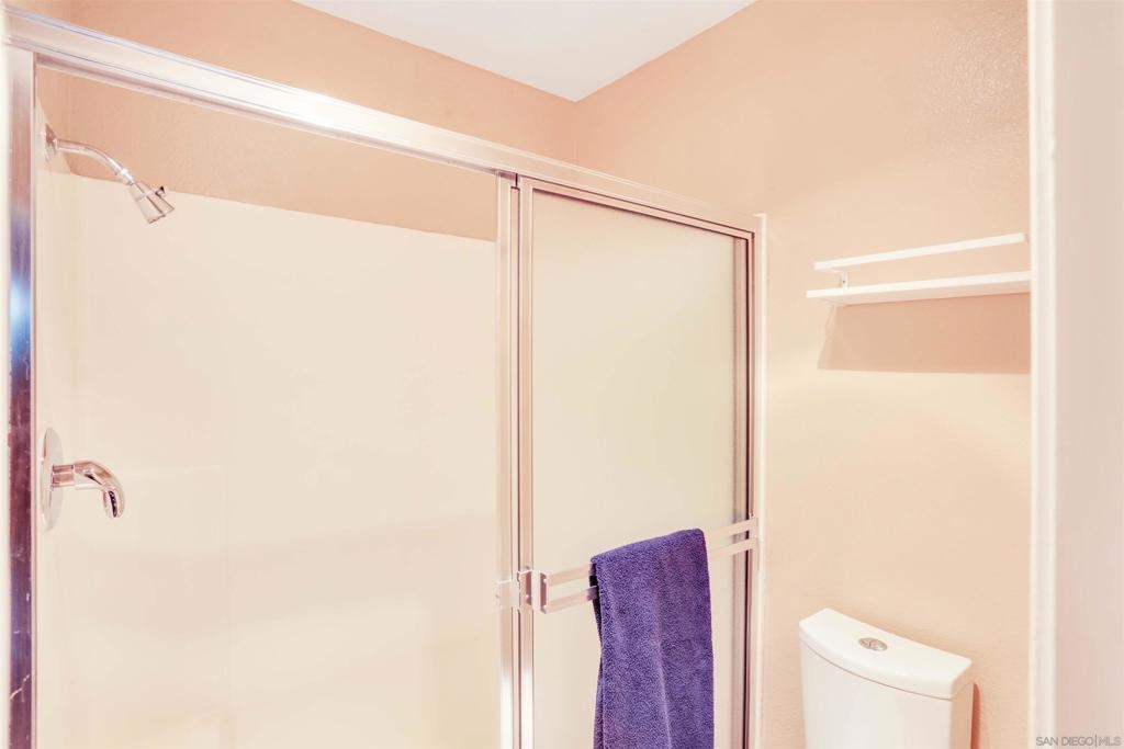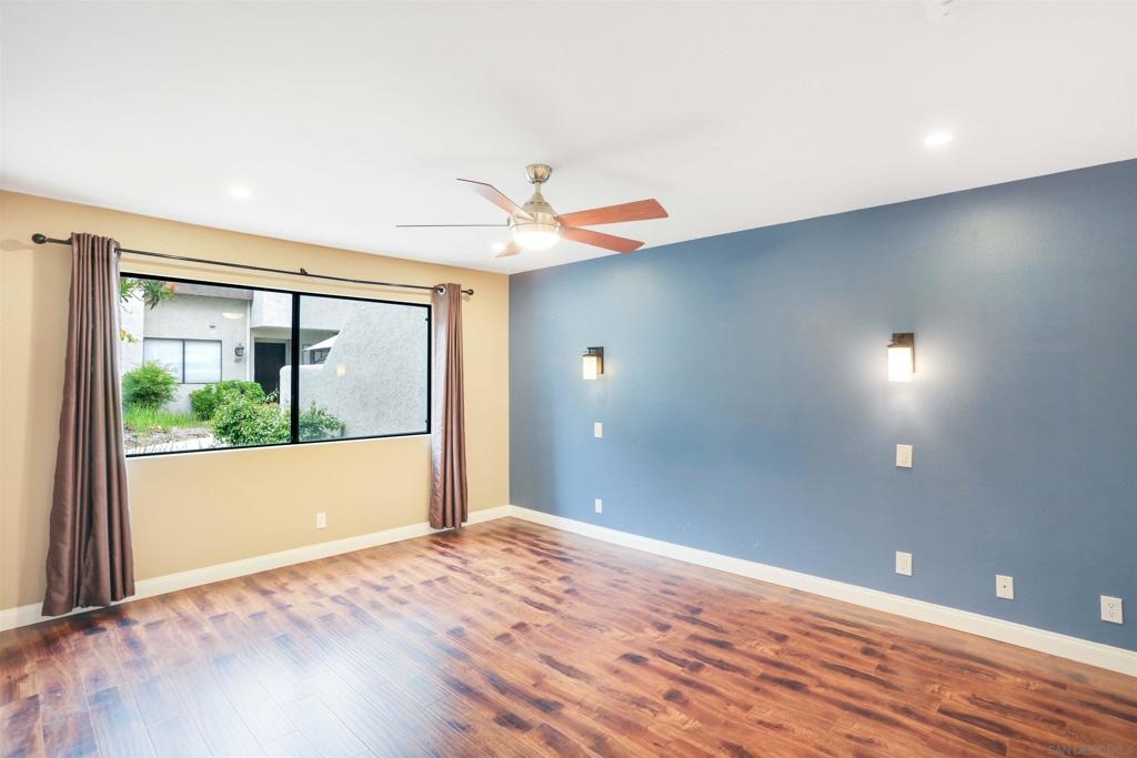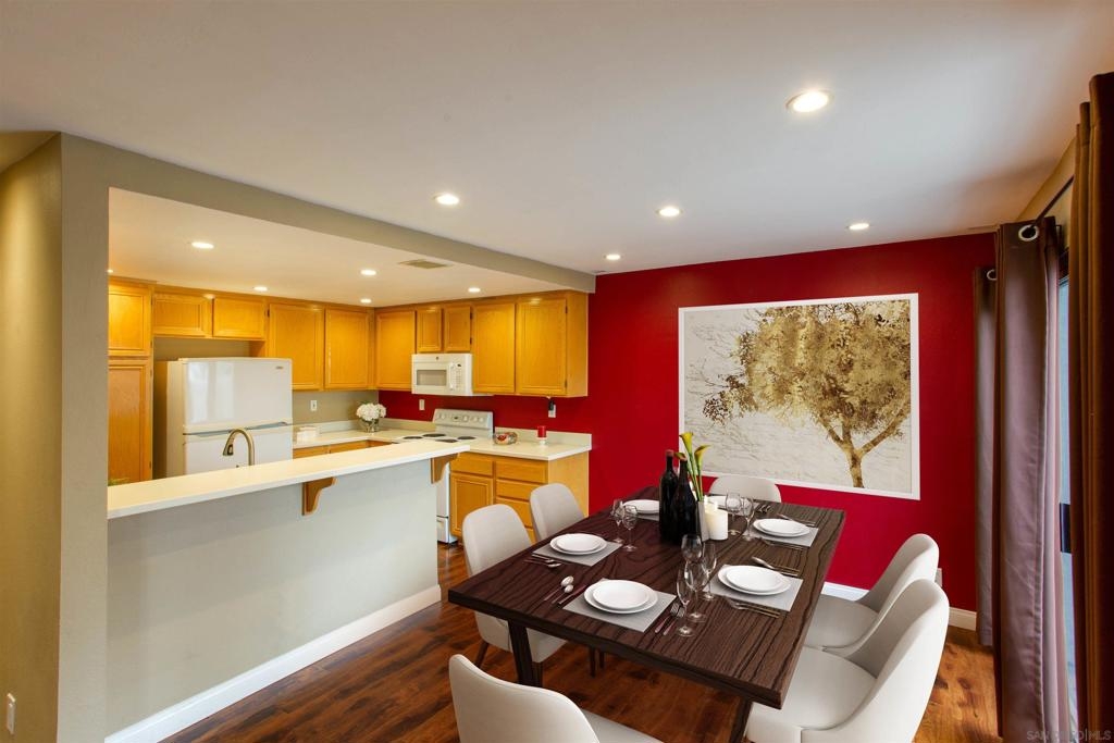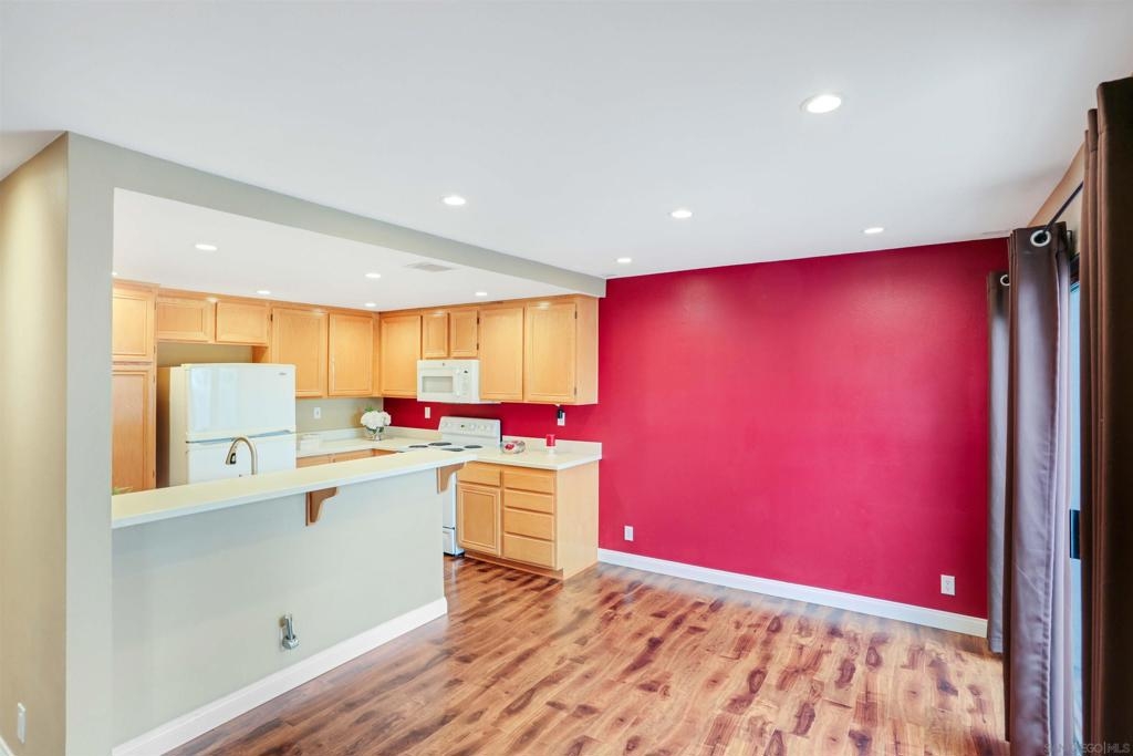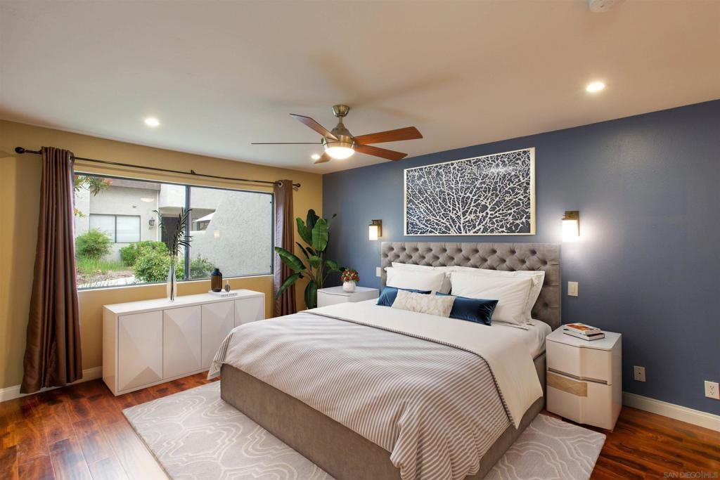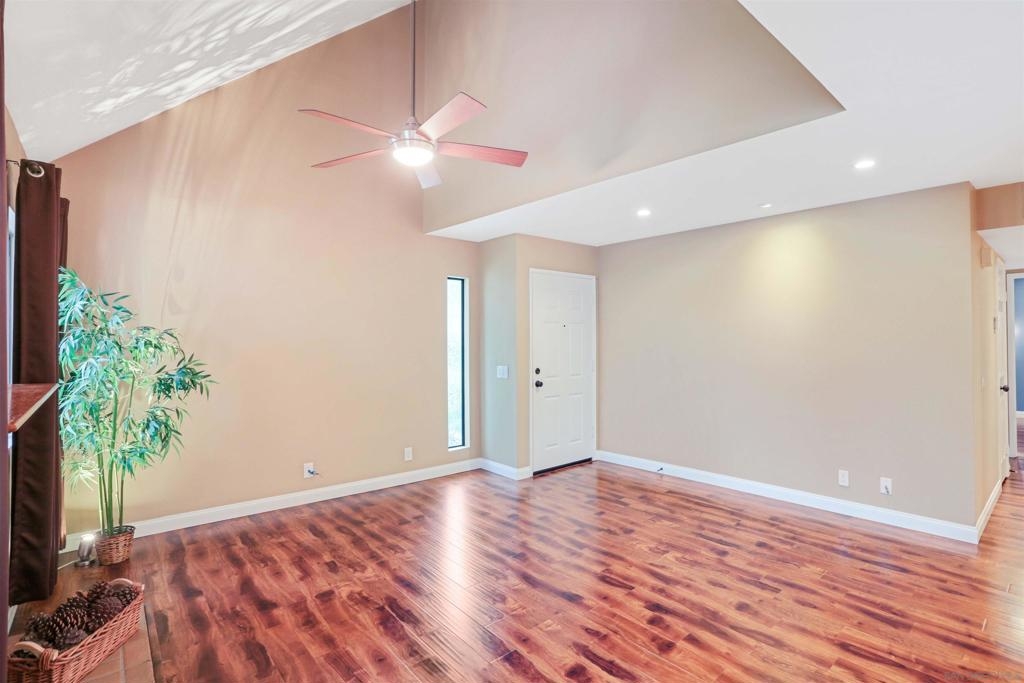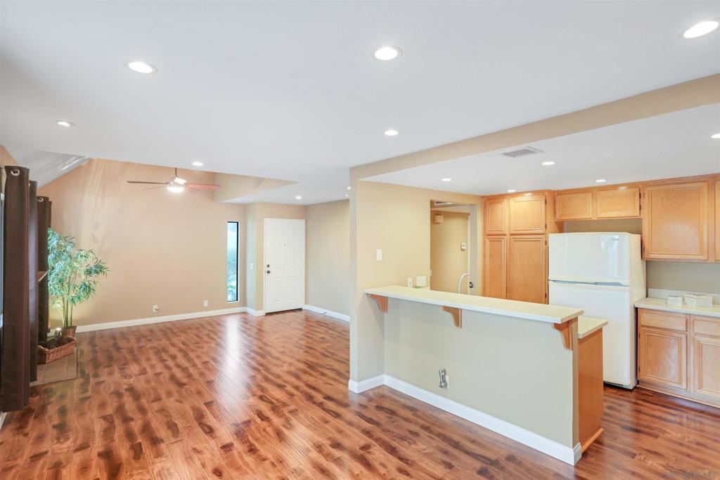 "Home sweet Home" is the theme that exemplifies this cozy 2-bedroom, 2-bathroom condo nestled in one of the quieter locations of the Bernardo Pines community. You'll appreciate the open floorplan and vaulted ceilings the moment you step through the front door. A brick hearth fireplace is the focal point of the oversized family room which opens to the adjacent dining and kitchen area. Views to the ample walled patio further enhances the overall open and welcoming feeling. (Supplement) The primary bedroom is generously proportioned and features a large walk-in closet, separate vanity, and stall shower/toilet area. The guest bedroom has 2 closet spaces and the guest bathroom features a tub/shower combo and is located just past the louvered door full-size side-by-side washer/dryer closet. Amenities abound with a community pool - spa - exercise facility - tennis court - and play area. The lush, mature landscape adds to the beauty and charm of the Bernardo Pines community. Located with easy freeway access, multiple eateries, shopping and community facilities - this Bernardo Pines condo is the perfect spot to call home! NOTE: The pictures that include furniture are "Virtually Staged" to assist with a potential visual representation of the rooms photographed.