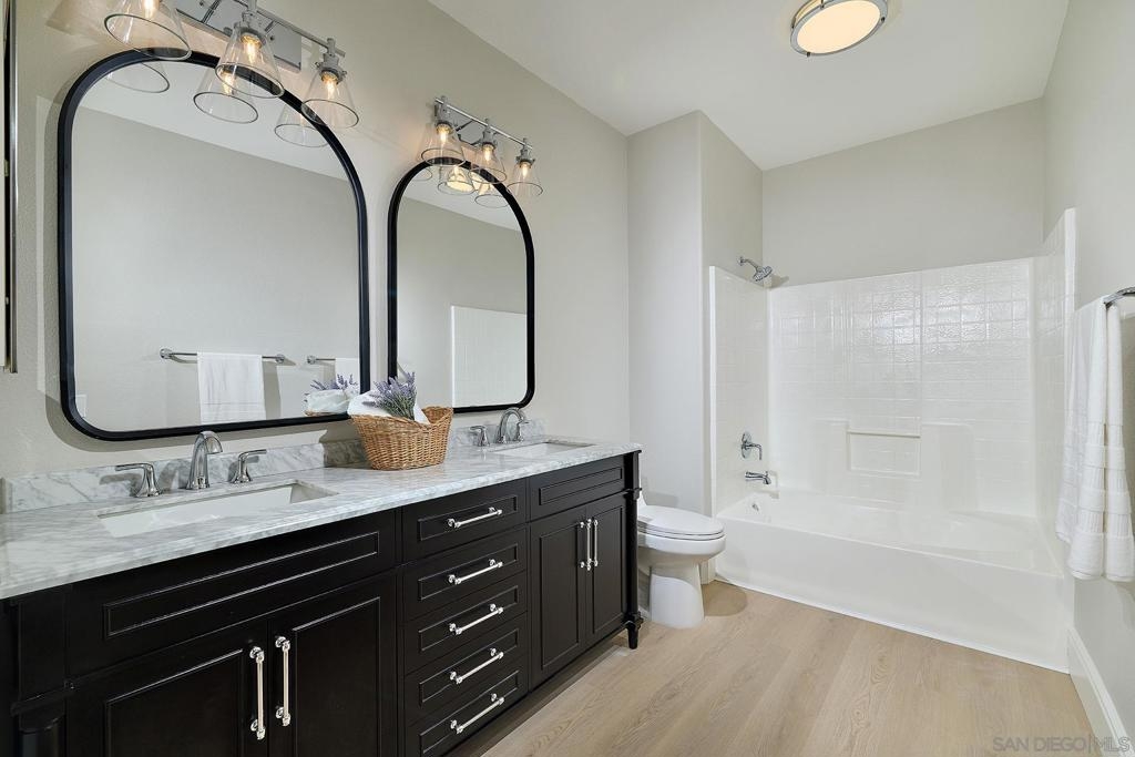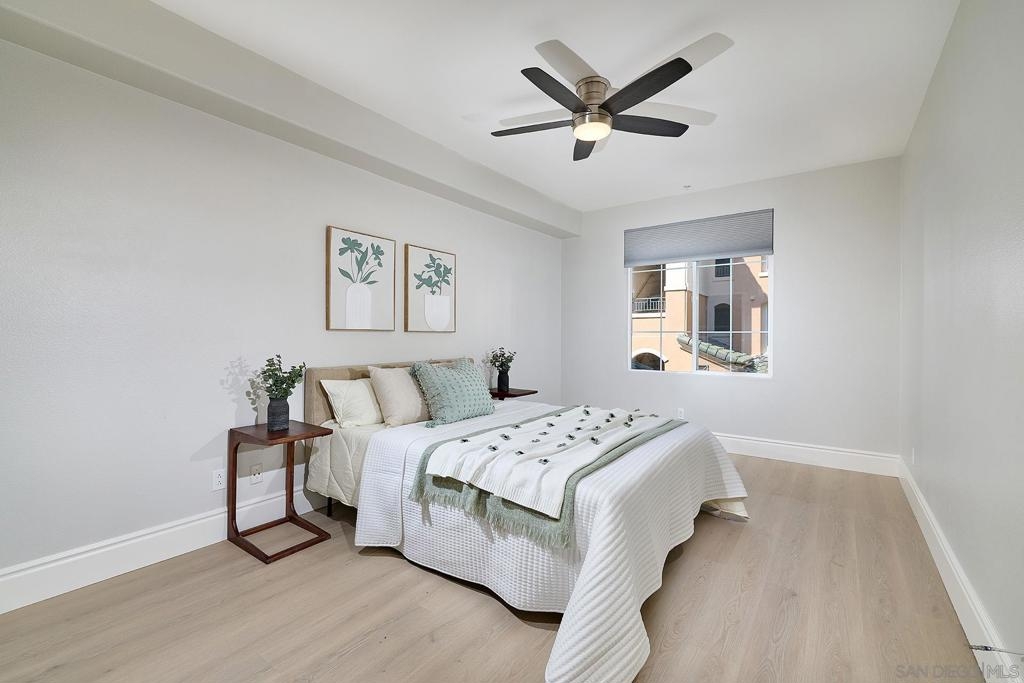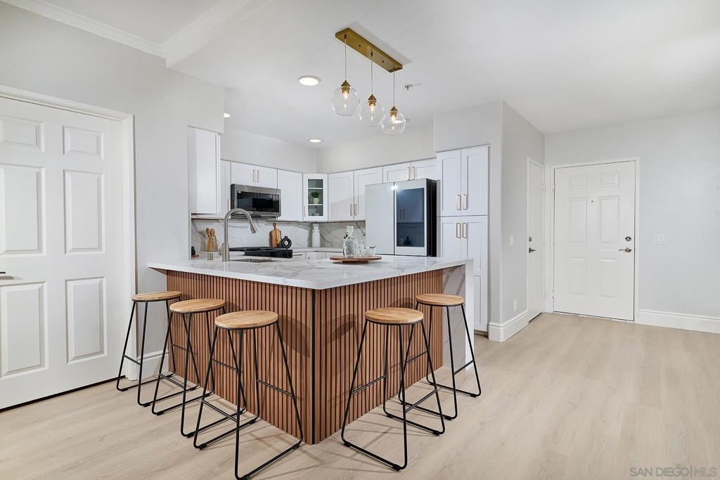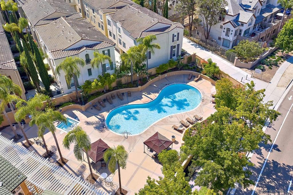 Fresh Pricing! Exceptional gated townhome. Experience refined living in this newly remodeled residence, featuring two spacious bedroom suites, each with a beautifully appointed ensuite bath. Every detail has been thoughtfully upgraded—from new luxury vinyl plank flooring and custom baseboards to fresh light fixtures that create a warm, inviting ambiance including a cozy fireplace and walk out balcony. The gourmet kitchen shines with new quartz counters, a waterfall-edge peninsula, sitting breakfast bar area, custom cabinetry, and new stainless steel appliances including a gas range and refrigerator. Spa-inspired bathroom suites showcase designer mirrors, premium finishes, and bespoke cabinetry. With direct access to a private two-car tandem garage, this home blends sophisticated style and resort like amenities such as a community pool and gym/clubhouse. This home feels brand new. Ideally located near top-rated schools, shopping, and the Torrey Pines State Beach. Well located in the complex. Move in Ready. Easy access from rear gate.