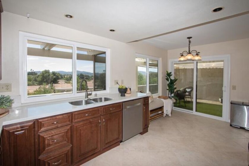 Ideally situated 55+ community of Oaks North Villas. Multiple dual paned windows, plantation blinds, afford splendid views N, E, and S. Sit back on your patio and enjoy your BBQ, coctails, coffee, and then lift some weights. What about sme Tai Chi? Just steps from your new home you'll access winding, beautifully manicured paths for walking and jogging, with benches for contemplating the exquisite golf courses. This community is just a roll or a stroll from Oaks North Community Center, Golf Courses, Historic Bernardo Winery, Lake Hodges, and the Mall. Easy access to freeways in all directions.