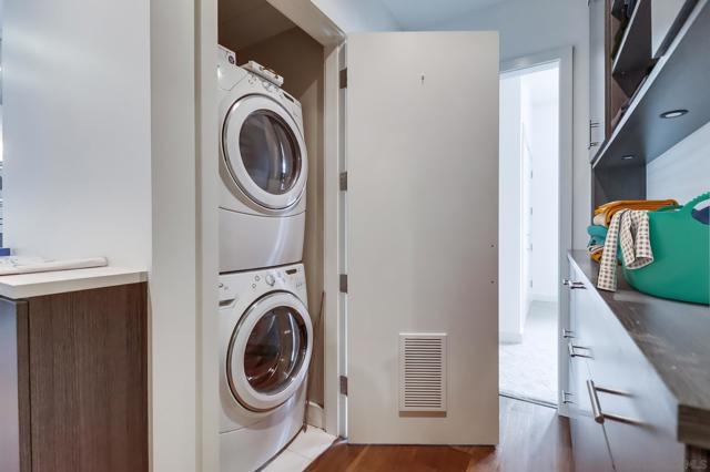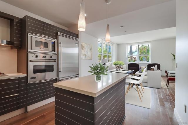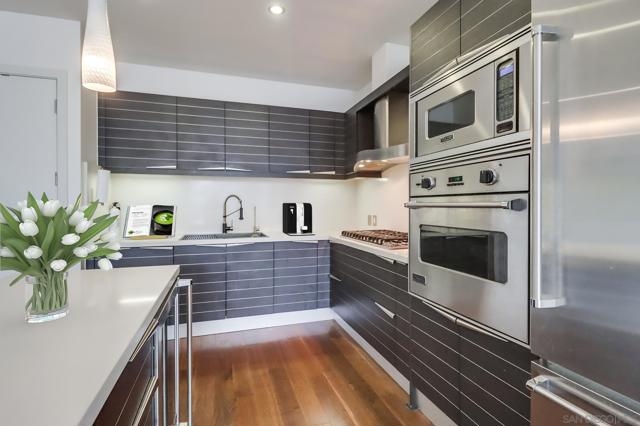 Luxe Lifestyle and Dog-Owner Dream Condo! Seller Motivated — Big Price Drop! Live in style at Bayside, Downtown San Diego’s premier high-rise. This 1BD/2BA boasts soaring 11’ ceilings, private patio, and rare street-side entry for a single-family feel. Viking kitchen, Snaidero cabinetry, solar shades, $40K in California Closets. Resort amenities: pool, spa, gym, wine room, theater, concierge. Walk a few steps away to Waterfront Park, for your dogs and/or children's joy and for practicing yoga in the park. Ideal for eBikers, runners and for easy access for the Little Italy Farmer's Market without using elevators and the main condo lobby. Sellers want it sold this month! The ultimate in convenience and luxury. Bayside is one of the most exclusive high rise towers downtown. This RESIDENCE IS A GREAT DOG OWNER'S DREAM OR THE PERFECT SECOND HOME! Just steps from Waterfront Park and no need to get on an elevator or enter a hallway to take your best friend out for a walk and get deliveries right to your private entrance, a huge living room with soaring 11 ft. ceilings, spacious bedroom and 2 full bathrooms with penthouse level finishes throughout and new AC (2023). $40,000+ in California Closet built-ins, including Murphy bed, laundry pull out w/built-in ironing board, pantry & all your storage needs. Corner location south/west facing windows! Viking and Miele appliances, Snaidero Italian cabinetry, workstation sink, water filtration system in the chef’s kitchen. Enjoy resort style living with Bayside’s brand new million dollar remodeled lobby, full time concierge, sparkling pool, hot tub, steam room, sauna, gym, outdoor kitchen, theater room, library, wine tasting room with wine refrigerator and community room with full kitchen and pool table for all your entertaining needs.