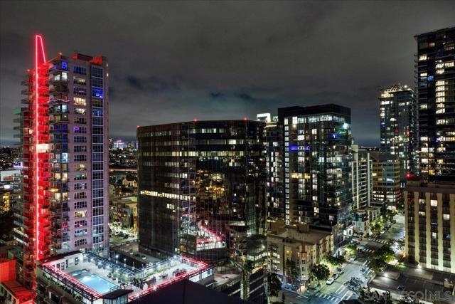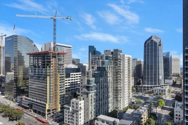 BEST VALUE IN SAVINA! CITY VIEWS! Perched on the 20th floor, this stunning east-facing residence offers an ideal split-bedroom layout (no shared wall), perfect for privacy and functionality. Located at the vibrant intersection of Little Italy and the Columbia District, Savina is one of Bosa’s premier developments renowned for exceptional design and quality craftsmanship. It is Downtown San Diego’s newest and most luxurious condo high-rise. Step inside to find an open-concept floor plan filled with natural light, hardwood flooring, and expansive windows that frame the panoramic city skyline views. The gourmet kitchen is a chef’s dream with a large waterfall-edge quartz island, hidden paneled Thermador refrigerator, and soft-close cabinetry. The dining area is currently used as a home office, making the most of the versatile layout. Both bedrooms feature blackout shades and the private balcony is perfect for enjoying San Diego’s cityscape and watching planes fly in. Additional highlights include a large private storage unit and one of the most amenity-rich offerings in Downtown: 24-hour concierge and security, resort-style pool and spa, state-of-the-art fitness center, steam and sauna rooms, resident lounge with a full kitchen and BBQ area, EV charging, dog run and pet spa, bicycle tune-up station, and more. Experience high-rise living at its finest!