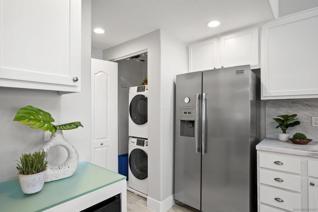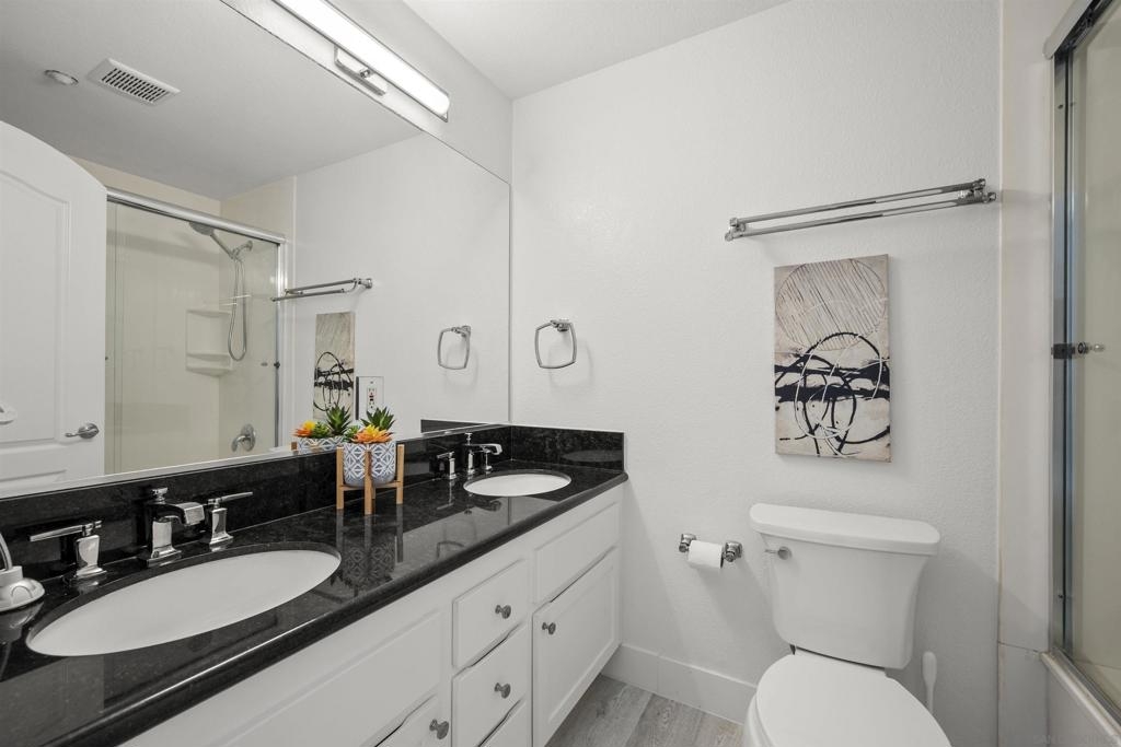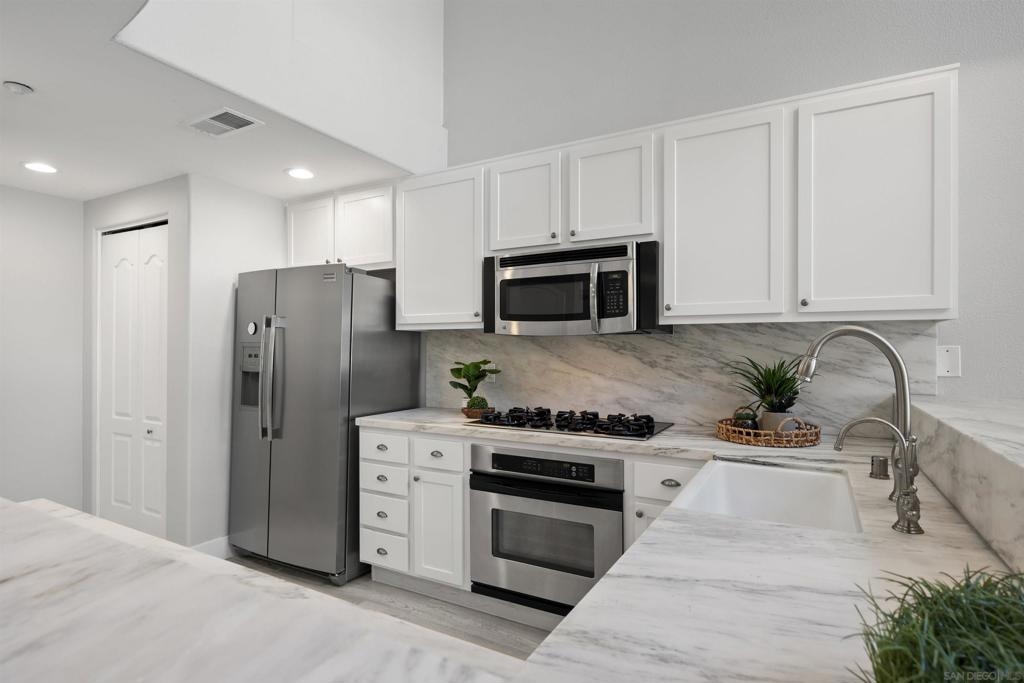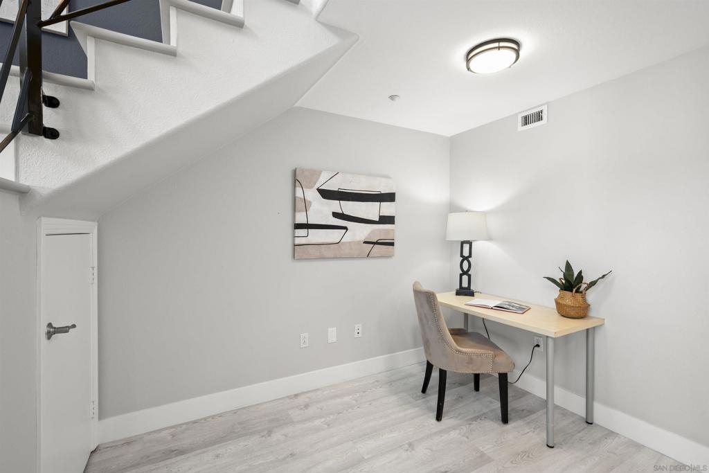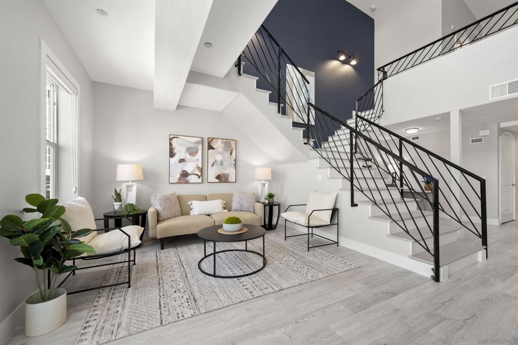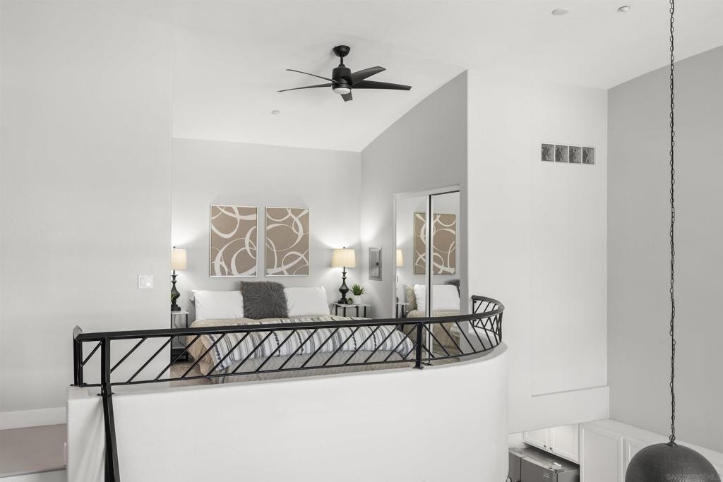 PRICE IMPROVEMENT! TOP-FLOOR, CORNER UNIT, 2-STORY LOFT w/SPLIT GRAND STAIRCASE! Immerse yourself in the lively culture of LITTLE ITALY with its renowned restaurants, bars, and cafes like Born & Raised, Craft & Commerce, and the vibrant Piazza Della Famiglia. Enjoy proximity to the San Diego Bay, Waterfront Park, and the Farmer's Market, all within 3 blocks! This one-of-a-kind unit offers 1,055 square feet of modern living with an open loft-style bedroom and 2 full bathrooms. As you step inside, you'll be greeted by towering 20-foot ceilings and brand new luxury vinyl flooring. This fully remodeled kitchen features elegant marble counters with a wraparound bar, perfect for hosting and entertaining. Enjoy the convenience of an In-Unit Full Size Washer/Dryer, and unwind on one of the two oversized private balconies. This loft-style penthouse is thoughtfully designed with a double staircase adorned with custom wrought iron railings, providing an artistic touch to the space. The upstairs area offers a full bath, loft style bedroom, Walk-In Closet, Balcony, and automatic blinds. Downstairs offers 1 full bath and a flex-space to be used as an optional bedroom, den, or office. 1 assigned, oversized, underground parking spot, that includes storage and additional space options (see pics). Village Walk amenities include a beautiful common courtyard with a waterfall, large fitness center, and a community rec room for social gatherings. This top-floor gem offers the ultimate blend of comfort, luxury, and urban convenience. Make it yours today!