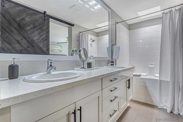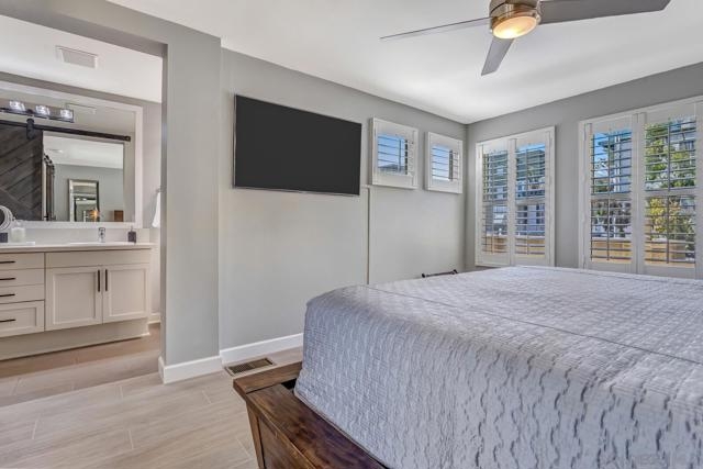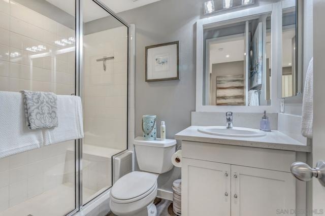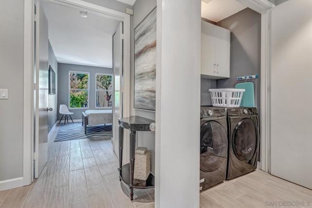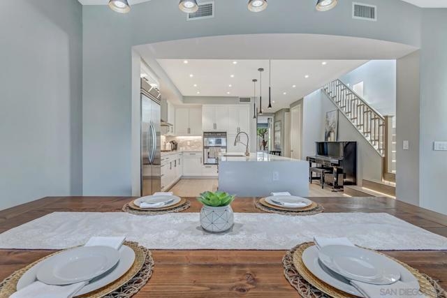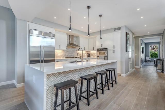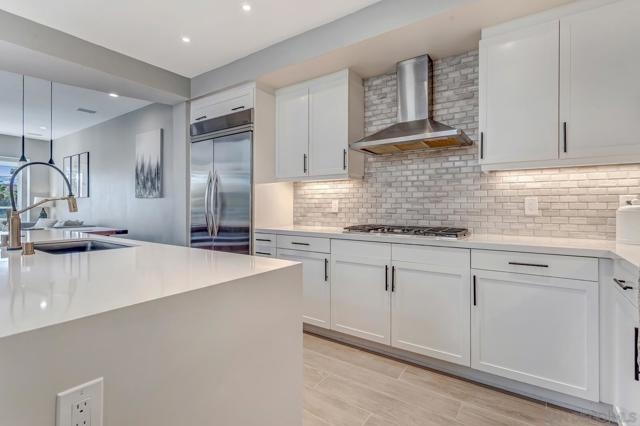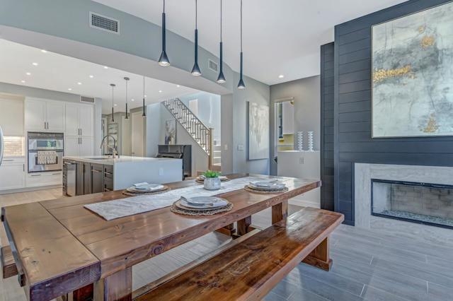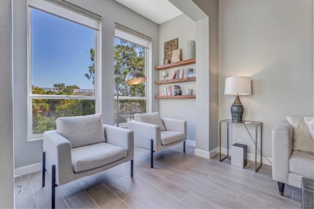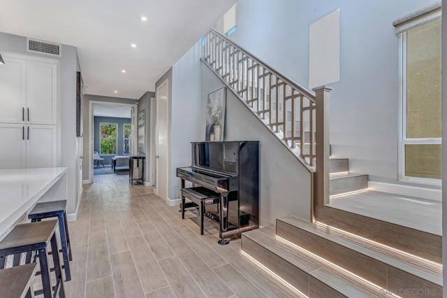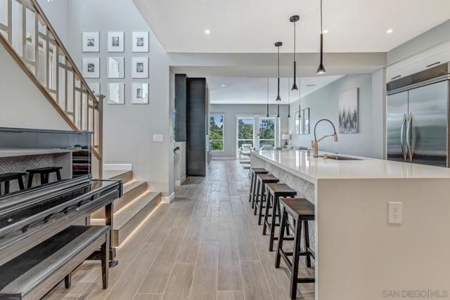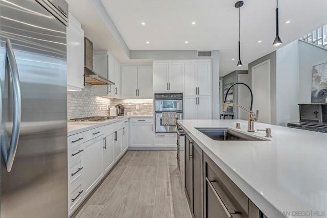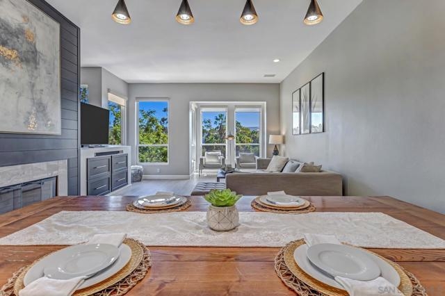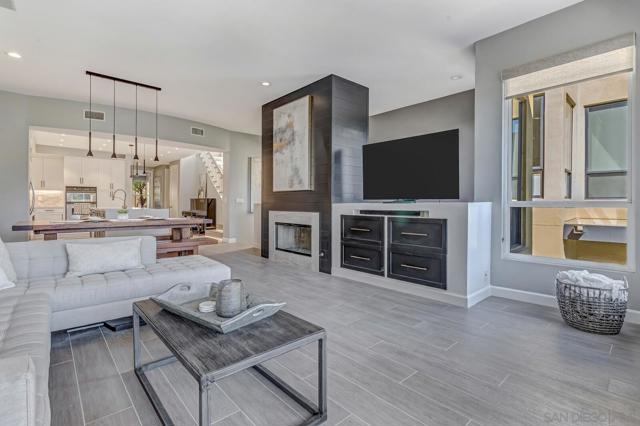 Chic Townhome @ Cortez Hill. Discover sophisticated urban living in this beautifully updated 3-bed, 2-bath townhome nestled in the desirable Cortez Hill neighborhood. This stylish residence blends modern finishes with comfortable charm, offering a light-filled open floor plan and high ceilings throughout. The recently renovated kitchen is a showstopper, featuring waterfall stone countertops on a spacious island, a stunning stone backsplash, shaker-style cabinetry, built-in high-end refrigerator, and stainless steel appliances all illuminated by designer lighting and sleek down-lights. The inviting living area centers around a bold statement fireplace and built-in entertainment unit, complemented by wood-style tile flooring and warm, soothing color tones. Roll-up blinds and shutters offer privacy and style in every room. Custom backlit stair steps add a unique architectural touch. Retreat to the private primary suite complete with elegant barn doors, its own balcony, and spa-inspired finishes. Enjoy San Diego’s perfect climate on the private outdoor balcony with a fire pit ideal for entertaining or quiet evenings under the stars. Additional highlights include a full-size washer & dryer, two-car tandem garage with a private storage room, and low HOA dues. This prime location is walkable to everything: Gaslamp, Little Italy, Petco Park, Balboa Park, waterfront, San Diego Zoo, Cortez Hill Park, and a wide array of restaurants & entertainment. Quick access to major freeways makes commuting a breeze. Stylish, central, and move-in ready this is downtown living at its best.