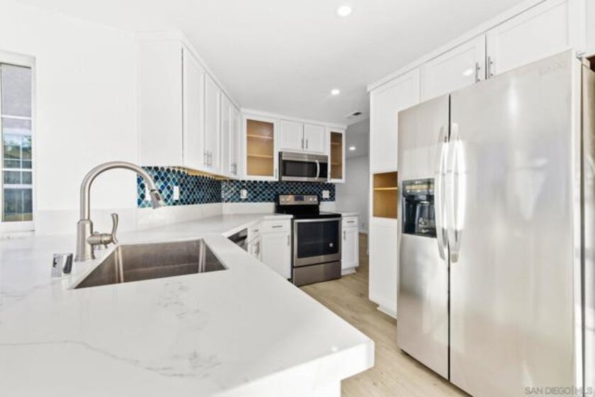 Beautiful Single-Story Villa located in the desirable Bernardo Heights area of Rancho Bernardo. This 2-bedroom, 2-bath home offers an open and airy floor plan, vaulted ceilings, and abundant natural light streaming from the skylights. The spacious living room features a cozy fireplace, 9-foot+ ceiling, and French doors that open to your private patio—perfect for relaxing or entertaining. Updated kitchen includes generous counter space, a charming bay-window breakfast nook, and stainless-steel appliances. Enjoy the convenience of an inside laundry room, ceiling fans, air conditioning, instant hot water, and direct access to the attached garage. The primary suite boasts vaulted ceilings, a skylight, and a beautifully updated en-suite bath. Residents of the Las Brisas community enjoy access to Bernardo Heights Community Center with tennis courts, pool, spa, fitness center, and more. Nearby Lucido Park offers tennis courts and a playground for outdoor fun. This turn-key home blends comfort, convenience, and resort-style living in one of Rancho Bernardo’s most sought-after neighborhoods.