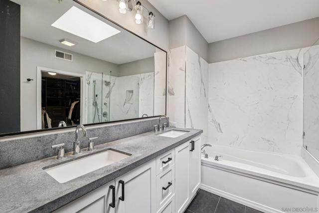 Experience breathtaking city and bay views from the top-floor, corner penthouse in DOMA—right in the heart of Little Italy. Rarely available and single-level, this 2 bedroom / 2.5 bathroom, 1,375 SF residence pairs dramatic high ceilings and an open, airy floor plan with wall-to-wall urban energy and sparkling water vistas from the living room and both bedrooms. A spacious private balcony —perfect for grilling and sunset watching— extends your living space outdoors. Two reserved, side-by-side parking spaces are conveniently located near the elevator for effortless city living. Inside, thoughtful upgrades elevate everyday life: luxury vinyl plank floors, new carpet, fresh paint, and a reimagined chef’s kitchen with quartz counters, new cabinetry, sink, and backsplash, plus a suite of newer smart appliances (cooktop and fridge). The living area features custom wood paneling by a local artist, while electric smart shades in the living room and bedroom dial in light and privacy with a tap. Both bathrooms showcase new tiling; the primary suite shines with a fully redone bath (new shower, dual sinks, lighting, cabinetry, and quartz backdrop) and a custom built-in closet. Ample cabinetry maximizes storage throughout and a spacious in-unit laundry room adds everyday convenience. Step outside your door to Little Italy’s restaurants, cafés, and weekend mercato—or head upstairs to DOMA’s rooftop deck for sunsets and the fitness room for on-site wellness. This is the one you’ve been waiting for!