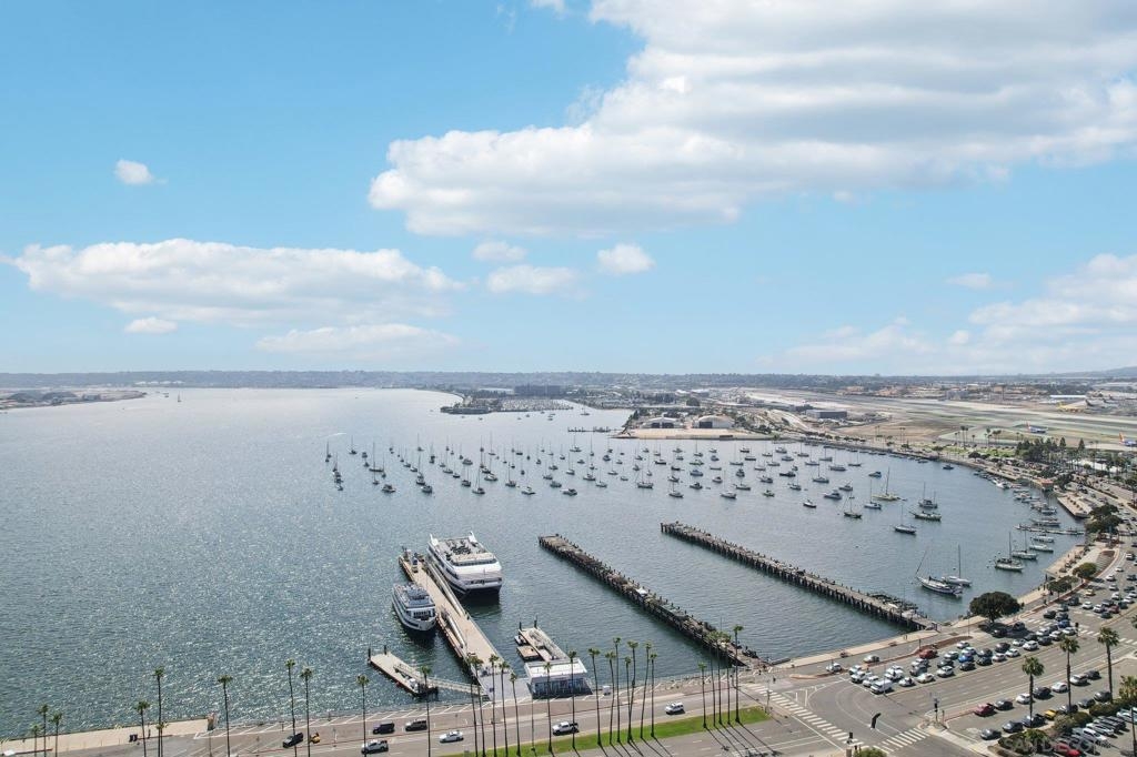 Live above it all in this rarely available penthouse loft at DOMA, one of Little Italy’s most architecturally celebrated buildings. With soaring ceilings, a dramatic skylight, and floor-to-ceiling windows framing panoramic bay and skyline views, this residence captures the essence of chic urban living. The open-concept layout delivers the true loft experience—light-filled, expansive, and effortlessly stylish—yet offers the versatility to be easily reimagined with defined living areas or additional private spaces to suit your lifestyle. The fluid design currently integrates living, dining, kitchen, and office zones, while a spacious private balcony extends the living outdoors with front-row views of San Diego sunsets, fireworks, and sparkling city lights. Modern upgrades enhance both comfort and convenience: a generous walk-in closet, in-unit laundry, Nest thermostat, Lutron blackout shades, reverse osmosis water filtration, built-in Sonos surround sound, and a brand-new HVAC system. Two side-by-side parking spaces with EV charger and a large private storage unit add everyday ease. At DOMA, bold industrial architecture pairs with resort-style amenities including a recently remodeled rooftop deck with sweeping bay views, fitness center, and tranquil courtyard. Just steps to Little Italy’s acclaimed restaurants, cafés, boutiques, and Farmers Market, this penthouse loft delivers a rare blend of style, flexibility, and location.