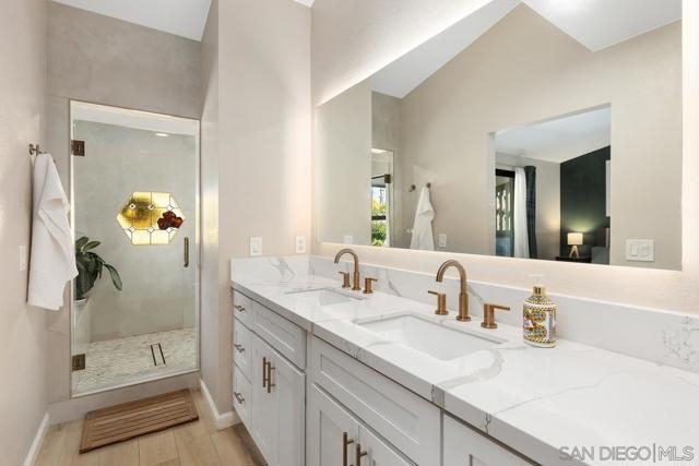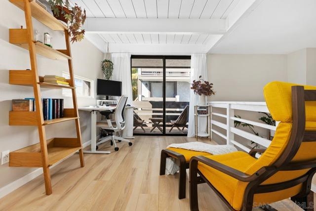 Experience life in one of San Diego’s most sought-after beach communities in this spacious Pacific Beach townhouse. Enjoy two bedrooms, each with an ensuite bathroom, large walk-in closet, and dedicated balcony. This property includes a bonus optional room, perfect for guest room or in-home office, and an additional large open loft area, making this two-bedroom property feel more like a four-bedroom home. Located in the perfect coastal location, within walking distance of Kate Sessions Park, beaches, grocery stores, bars, restaurants and so much more. Get your daily dose of San Diego sunshine with tons of private outdoor living space, including a large patio off the living room and four attached decks, providing an indoor/outdoor living flow to every floor of the townhome. Remodeled kitchen offers soaring ceilings, white custom cabinetry, quartz counters with Cafe' and Kitchen Aid appliances. Primary bath features a large custom walk-in shower and large dual sink vanity. Private two-car tandem garage with direct access, offering secure parking and extra storage space, with a newly upgraded quiet garage door opener. This multi-level property offers abundant natural light throughout with large and various windows, including two upgraded Anderson sliding glass doors. Enjoy central heating and A/C, with ecobee smart home thermostat, and cozy up on those cooler nights with two fireplaces. This property is located within a well-maintained gated complex of four privately owned townhomes, and is only attached on one side. This property truly has it all.