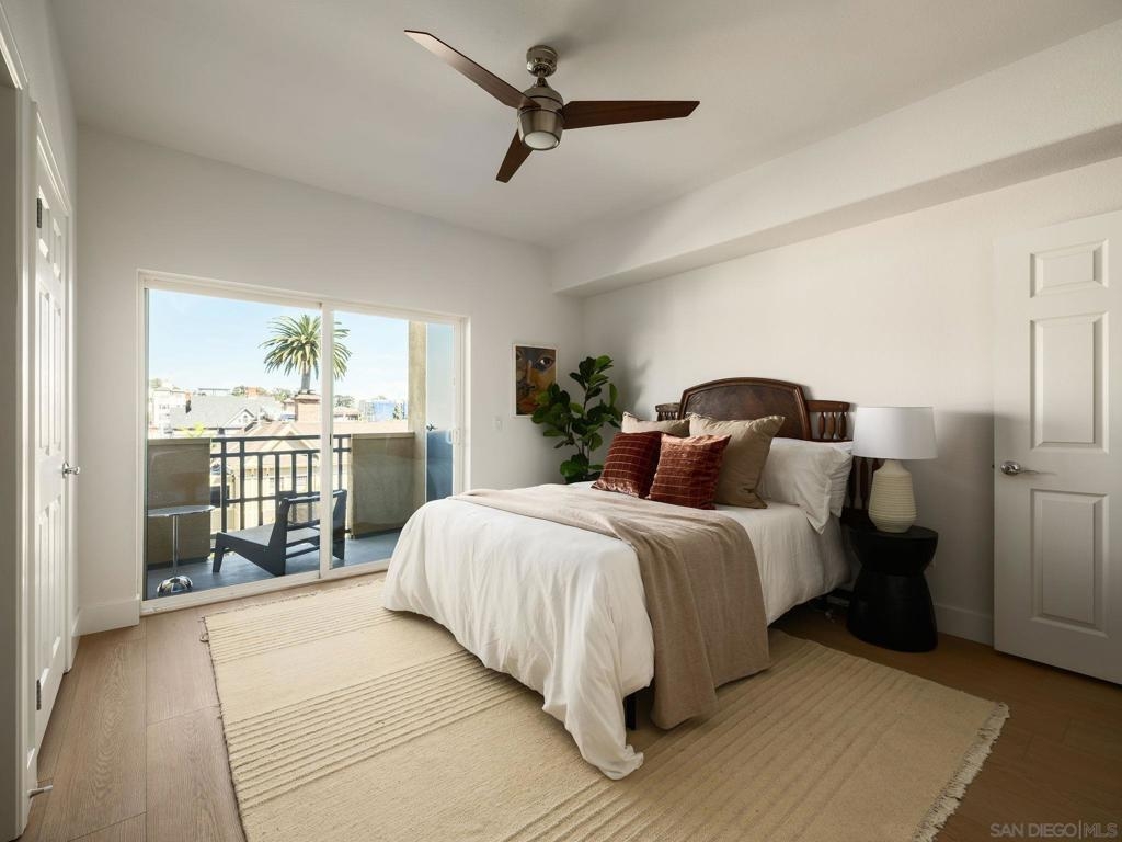 First time on market! One-of-a-Kind Loft Condo at The Lodge in Bankers Hill! Welcome to one of the most distinctive residences, as a matter of fact, the only unit of its kind in The Lodge, a sought-after Bankers Hill community. One feature that sets this apart is a permitted loft & windows addition, with a custom fabricated spiral staircase, that adds a versatile third space above the two main level bedrooms, ideal for a home office, studio, bedroom or guest area. Vaulted ceilings and great natural light make the home feel open and expansive. The loft features added windows for additional light, a peek view, and improved airflow throughout. The main level has 2 bedrooms, 2 bathrooms & 2 balconies, extending the living space outdoors giving you great spaces to enjoy San Diego's famous weather. The unit has been freshly painted & has upgrades throughout & offers more storage than most condos, with three dedicated storage spaces in addition to nicely sized closets. In-unit laundry, two community secured garaged parking spaces, and central AC round out the practical amenities. Community features include a BBQ and outdoor seating area, a fitness center, and secured gated access. The Lodge sits steps from Balboa Park, Little Italy, and the dining corridor along 5th Avenue, with Downtown San Diego just minutes away. You won't want to miss out on this truly unique and special home!