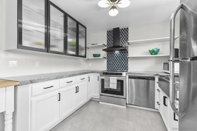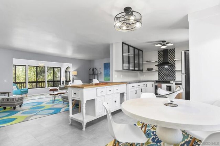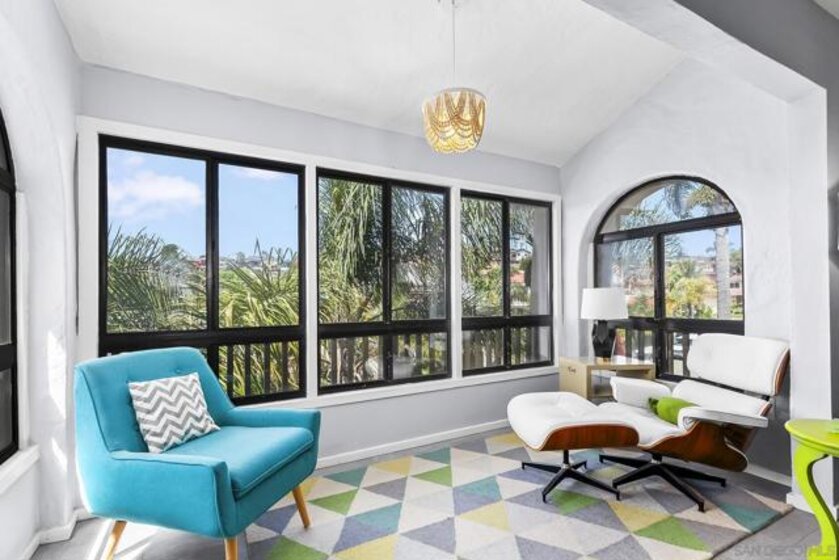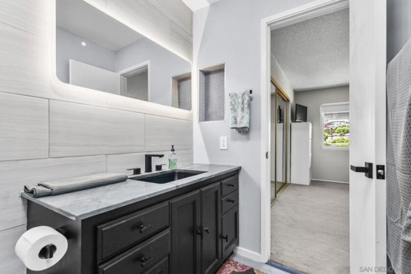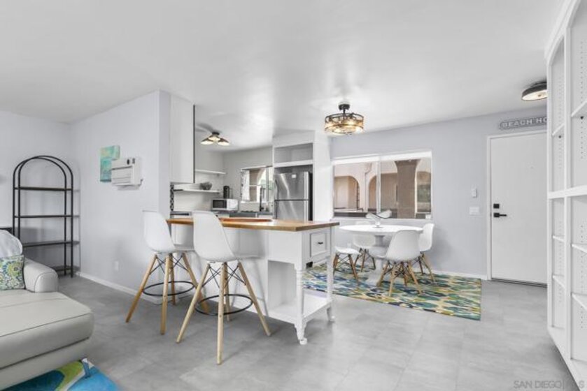 Welcome to Bay Park! Perched in one of the neighborhood’s best locations, this home offers sweeping Views and stunning sunsets. A designer renovation features an open-concept floor plan that seamlessly connects the oversized living room, dining, and kitchen. Highlights include: New upper cabinets with open shelving natural quartzite countertops, Induction cooktop/range, striking 32-inch hammered stainless steel sink. Freestanding peninsula island — perfect for casual dining and entertaining Additional upgrades include fresh paint, luxury vinyl tile flooring, a custom-built fireplace, and a spa-like bathroom with a beautifully tiled walk-in shower. With 864 sq. ft. plus an enclosed patio (total approx. 924 sq. ft.), this home blends style, comfort, and convenience. Just minutes from Mission Bay, local restaurants, shopping, the I-5 freeway, and the San Diego Trolley line with direct service to UCSD and downtown. Fresh, Modern & Ready for You in Bay Park! Move right in and enjoy a bright open floor plan, quartzite counters, induction cooktop, and beautifully tiled walk-in shower. Close to shopping, and coastal adventures. With 864 sq. ft. plus an enclosed patio (total approx. 924 sq. ft.), this home blends style, comfort, and convenience. Enjoy Bay views and night lights from your extended enclosed patio and bedroom. You will love the comfort of this home.