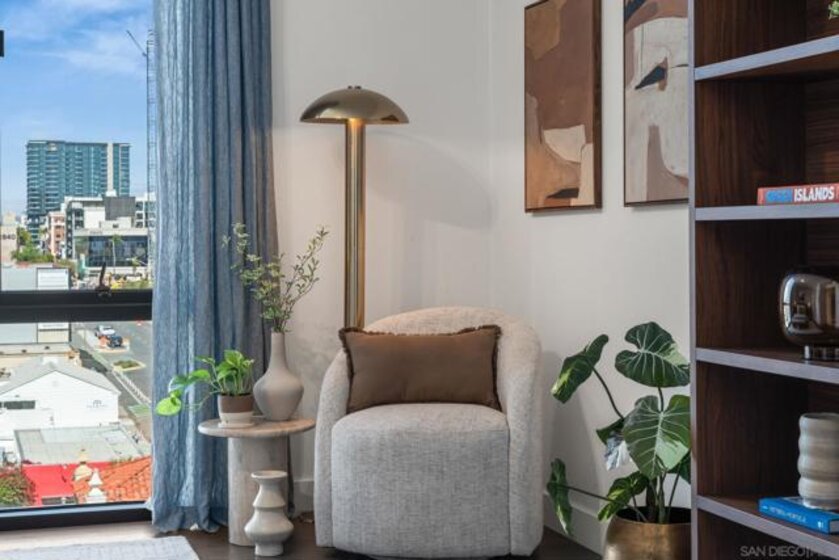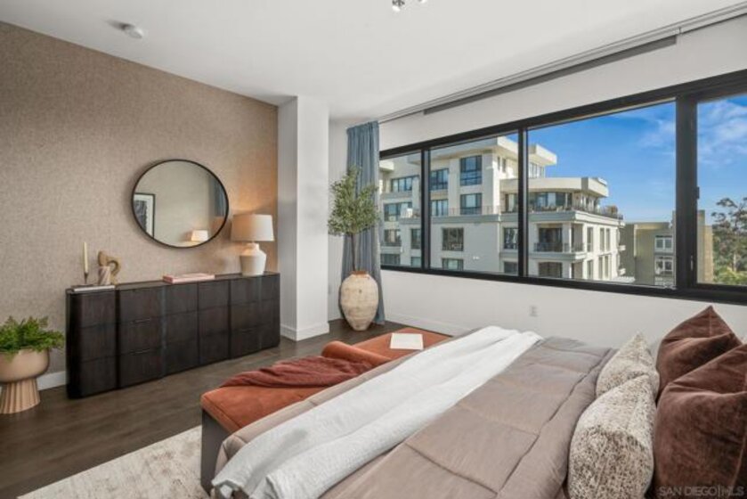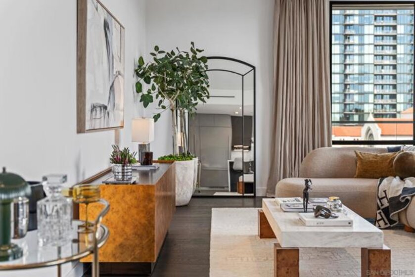 Welcome to 41West, a rare boutique luxury residence in the heart of Bankers Hill, just steps from Balboa Park. With only 41 homes, this exclusive building offers privacy, refined design, and one of San Diego’s most desirable walkable urban locations. Inside, 10-foot ceilings and a dramatic floor-to-ceiling wall of NanaWall doors open to an oversized private patio with views of Balboa Park.The elegant open floor plan offers generous living and dining areas, while bedrooms are thoughtfully positioned on opposite sides of the home for maximum privacy. The chef’s kitchen features Italian cabinetry, premium appliances, and sleek modern finishes, complemented by beautiful wood flooring throughout. The spacious primary suite includes a large walk-in closet and a spa-inspired bathroom with luxury finishes. Enjoy charming corridor views toward 5th Avenue and Balboa Park, with acclaimed restaurants, cafés, and cultural destinations just outside your door. Complete with two side-by-side parking spaces and a location minutes to downtown and the airport, this residence is ideal as a sophisticated primary home or an elegant San Diego retreat.