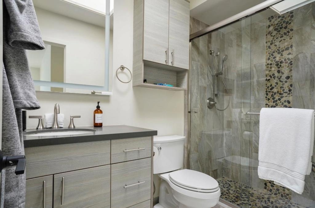 BAY FRONT VIEWS!! Welcome to your dream coastal retreat! This beautiful, remodeled 3-bdrm, 2bth, penthouse offers 1,190 sq ft of serene luxury living with breathtaking bay views and a unique 2-car detached garage! Enjoy the calming sea breeze and panoramic sunsets from your top-floor sanctuary. Whether you're relaxing at home or entertaining, the modern, open layout and natural light make this space truly special. Located just steps from the water, you'll have easy access to water sports, jet skiing, scenic parks, popular restaurants, and charming cafés—all just outside your door. If you're looking for a bayfront lifestyle w/ the best views San Diego has to offer, convenience, and coastal charm, this is the home for you!