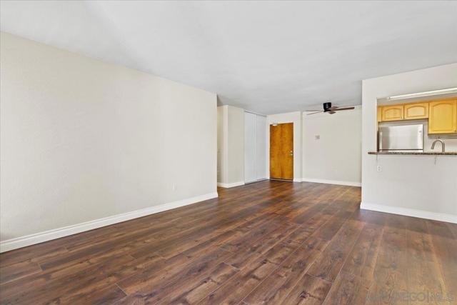 Opportunity awaits in the heart of Golden Hill with this ideally located 2-bedroom, 2-bath residence. Thoughtfully designed for both comfort and privacy, the home features a spacious, open-concept floor plan that welcomes you with a bright dining area flowing effortlessly into an inviting living room by a welcoming fireplace. The well-appointed kitchen maximizes functionality, offering generous granite countertops and abundant cabinetry for effortless culinary prep and storage. Step outside to a serene, private balcony that overlooks lush greenery—an ideal setting for morning coffee or evening relaxation. Each bedroom is strategically placed on opposite sides of the living space, enhancing privacy. The primary suite includes a sizable closet and an en-suite bath, while a full-size washer and dryer provide added convenience. Nestled in the sought-after Golden Homes community, residents enjoy a wealth of amenities including a clubhouse, swimming pool, spa, BBQ area, bike storage, elevator access, and gated underground parking. HOA fees also cover water, trash, and recycling services. Perfectly positioned just steps from local favorites like Buona Forchetta, Kindred, and Food Bowl Market, this home is also just a mile from South Park’s Target and minutes from downtown, Petco Park, Coronado, and the San Diego Bay. With easy access to major highways (5, 15, and 94) and public transit, this vibrant neighborhood rich in history and charm is an ideal place to call home. VA APPROVED COMPLEX!