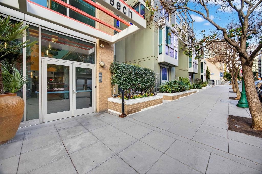 Step into the vibrant Little Italy lifestyle with this one bedroom, two bathroom ground level condo featuring two private entrances and direct access to State St for easy access and added convenience. Just 1.5 blocks from your front door to the Farmers Market, the Little Italy dog park, and walking distance to the entirety of Little Italy, including restaurants, cafes, bars, boutique shops, and the waterfront, with the soon to open Whole Foods just around the corner. Enjoy effortless city living in a convenient ground floor home with an oversized bedroom boasting an en-suite bath, plus a separate half bath that offers added comfort and privacy for guests. Stainless steel appliances, a brand new stove, Bosch dishwasher, in-unit washer and dryer, and forced air heating and AC provide everyday ease. The spacious private patio not only offers a quiet retreat for morning coffee or evening relaxation, but also serves as a secondary private entrance, creating seamless indoor-outdoor living and ideal access for pets or visitors. This unit comes with one assigned parking space in a secure underground garage. The La Vita community features a bicycle room and access to resort-style amenities including a pool, spa, BBQs, gym, and inviting common areas for gatherings with friends and family, all within a professionally managed HOA. Building is VA and FHA approved! Experience the ultimate blend of comfort, convenience, and urban coastal charm in one of San Diego’s most sought-after neighborhoods.