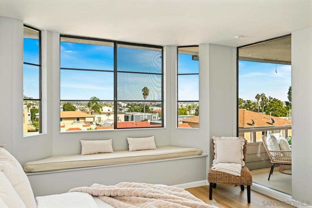 Perched just one block from Shelter Island, premier yacht clubs, and local coffee and dining, this top-floor 2 bed, 2 bath condo offers unbeatable panoramic views from every room. Take in 180° vistas of downtown’s twinkle lights, the bay, and the coastline from your balcony or master suite—these are sunsets worth staying home for. The kitchen and guest bedroom capture serene outlooks of the Point Loma hills and marina, adding to the home’s coastal charm. Featuring brand new luxury vinyl plank flooring, fresh interior paint, and a cozy fireplace, this open-concept space perfectly blends comfort and style. The quiet, gated community offers two side-by-side parking spaces in a secure underground garage, an oversized storage shed, and elevator access from the garage directly to your floor. HOA includes water. A must-see in person to truly capture the views!