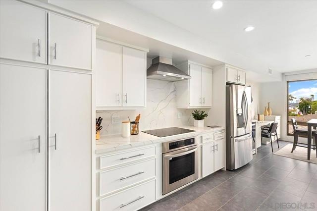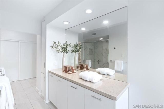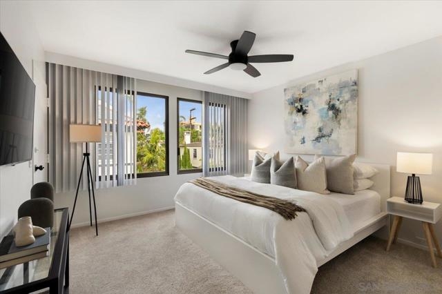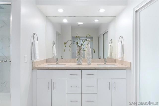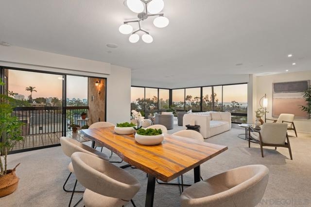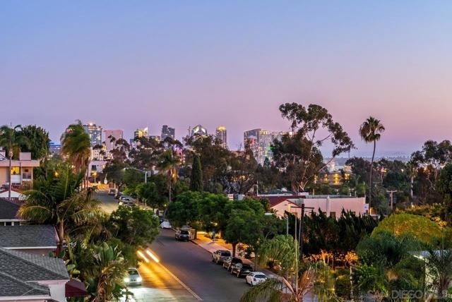 Rare opportunity at exceptional value. Sophisticated single-level residence with panoramic views! Experience elevated living in this oversized 2,294 sq. ft. single-level residence, where elegance and expansive views converge. From sunrise to sunset, enjoy sweeping 180-degree vistas—city lights, ocean horizons, the peninsula, and lush tree-lines—spanning south and west. Set within an exclusive 8-residence boutique building, the home offers rare privacy, a quiet elevator, and secured parking. Nestled in the heart of Bankers Hill, you’re just steps from Balboa Park, Downtown, and the iconic 7 Bridges walk. Inside, a professional remodel blends modern design with thoughtful detail—smooth textured walls, integrated sound, automated shades, updated lighting, and premium flooring. Abundant closets and built-in storage maximize convenience throughout. The open-concept living and dining spaces flow seamlessly with a wraparound backdrop of views. The remodeled kitchen balances function and style, while the flexible third bedroom/office also captures western exposure. Retreat to a spacious primary suite with a spa-inspired bath featuring a soaking tub, walk-in shower, and expansive closet. A light-filled secondary suite offers its own marble bath and large walk-in. The full-size laundry room, reimagined with custom cabinetry and oversized sink, adds everyday ease. A rare blend of exclusivity, craftsmanship, and location—this home defines refined San Diego living.