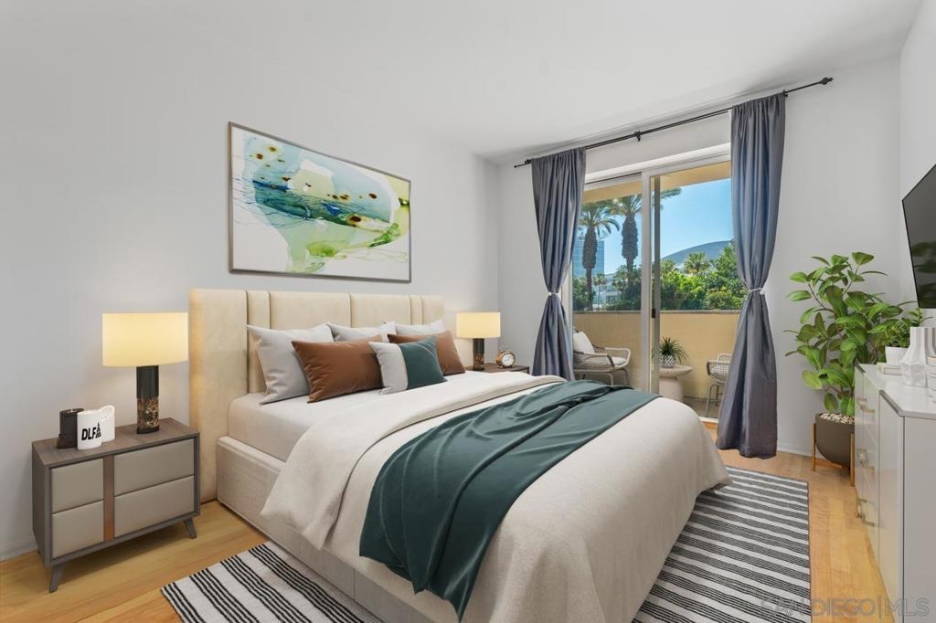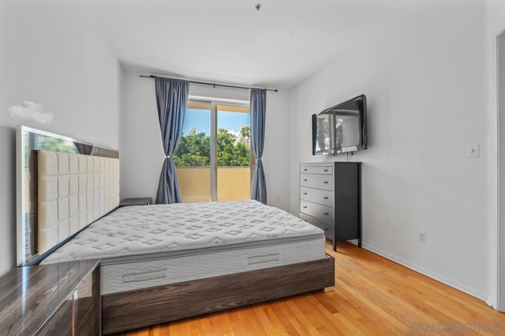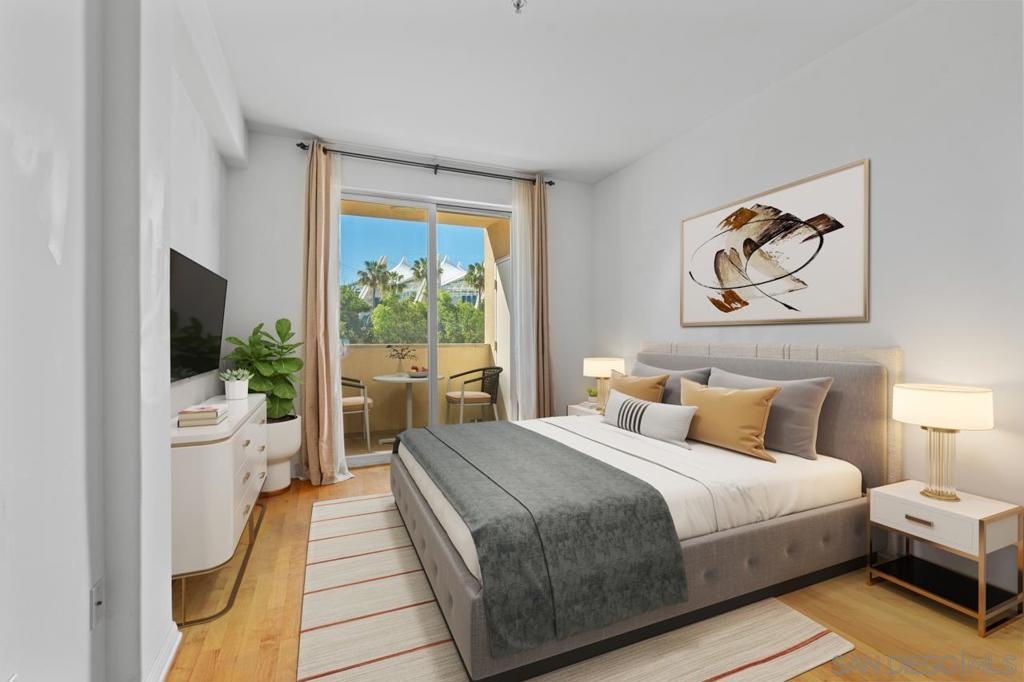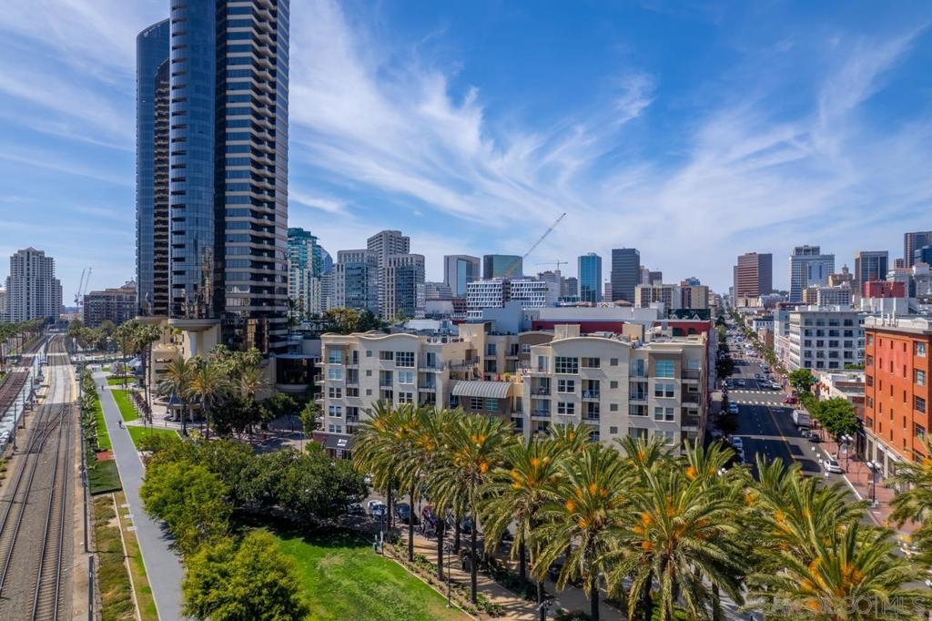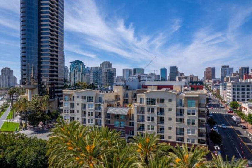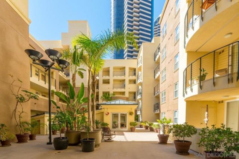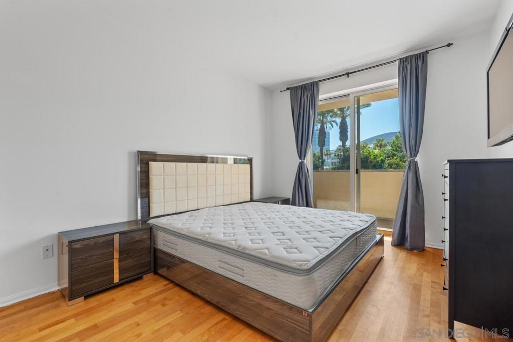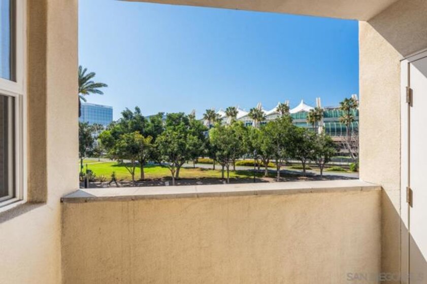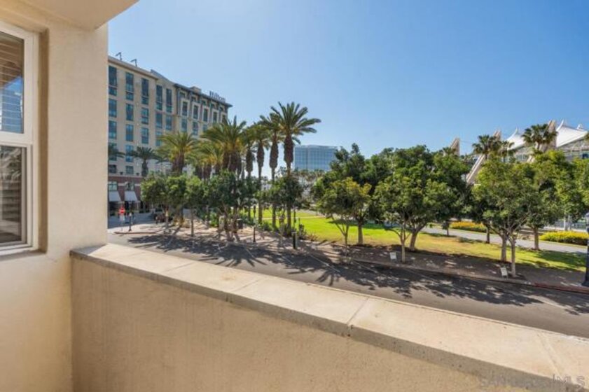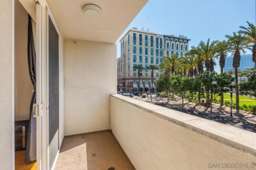 Welcome to Crown Bay, one of Downtown San Diego's most sought-after addresses. This south facing, bright and airy residence features a smart split floor plan, hardwood floors, two private balconies perfect for soaking in the San Diego sunshine, and beautiful hardwood floors in original condition that add warmth and character throughout. Two side-by-side parking spots — not tandem — are included, a rare and valuable bonus. Crown Bay is a boutique art nouveau building with only 84 residences, offering an intimate community feel with resort-style amenities including a fully equipped fitness center, rooftop BBQ lounge, and an elegant atrium courtyard. And with Fleming's Steakhouse right on the ground floor, fine dining is literally steps from your front door. Step outside and you're one block from the world-famous Gaslamp Quarter, a short stroll to Petco Park, the Waterfront Park, the Convention Center, and some of the best restaurants, shopping, and nightlife Downtown San Diego has to offer. Opportunities like this don't come around often. Don't miss your chance to own a piece of San Diego's vibrant downtown lifestyle!