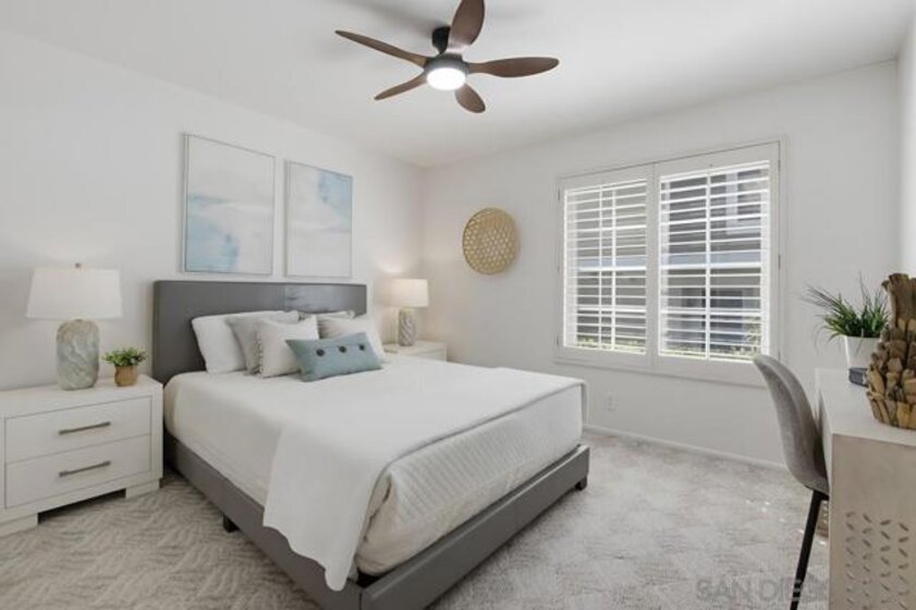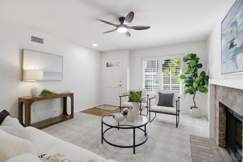 Tucked away in the sought-after Groves community, this light-filled corner townhome offers the perfect blend of comfort, privacy, and convenience. The single-level layout features 2 bedrooms, 2 baths, and 1,066 sq. ft. of thoughtfully designed living space. Recently refreshed with smooth ceilings, fresh interior paint, and updated fixtures, the home feels modern and move-in ready. Enjoy a welcoming living room with a cozy fireplace, dual-pane windows throughout, and a private enclosed patio—perfect for morning coffee or evening gatherings. The updated kitchen combines style and functionality with stainless steel appliances and smart storage solutions. A dedicated laundry area, whole home water filtration and energy-efficient tankless water heater add everyday convenience. Additional highlights include a detached one-car garage with extra storage, the privacy of being an end-unit and beautiful community pool and tennis courts. Set within one of Carmel Valley’s most desirable communities, this home offers easy access to top-rated schools, beautiful parks, shopping, dining, and everything that makes coastal San Diego living so exceptional.