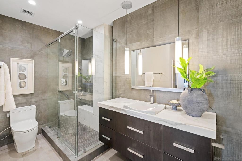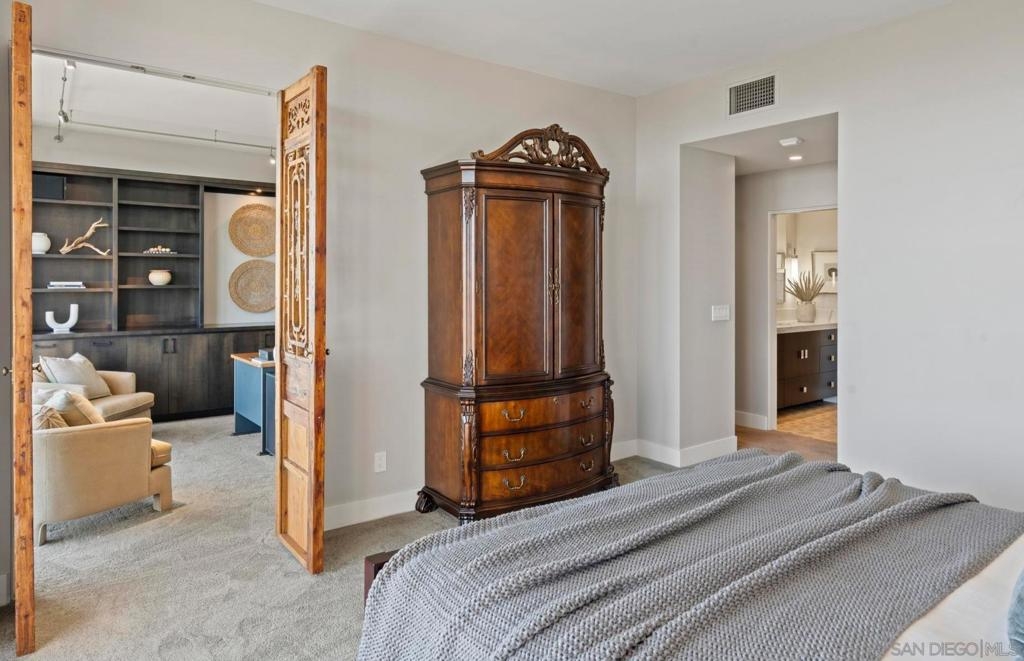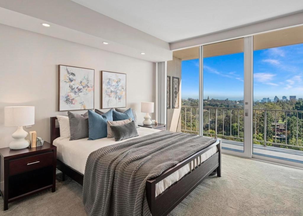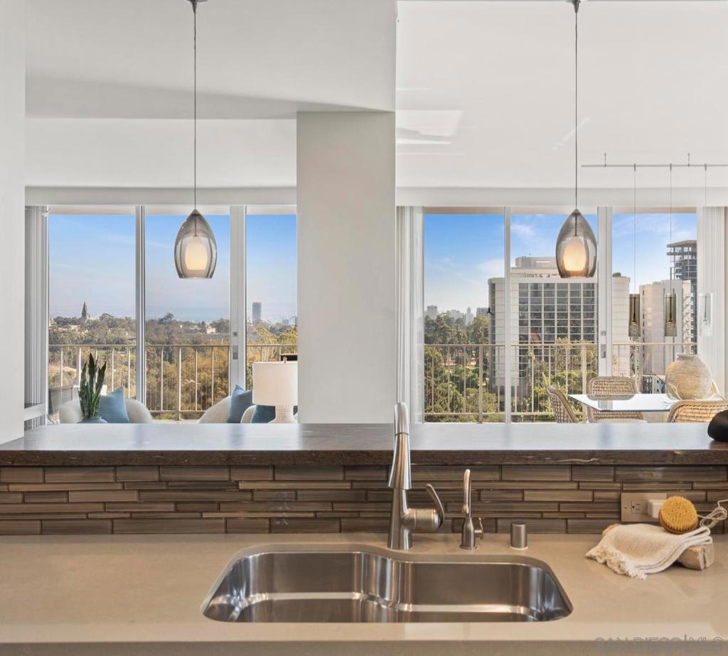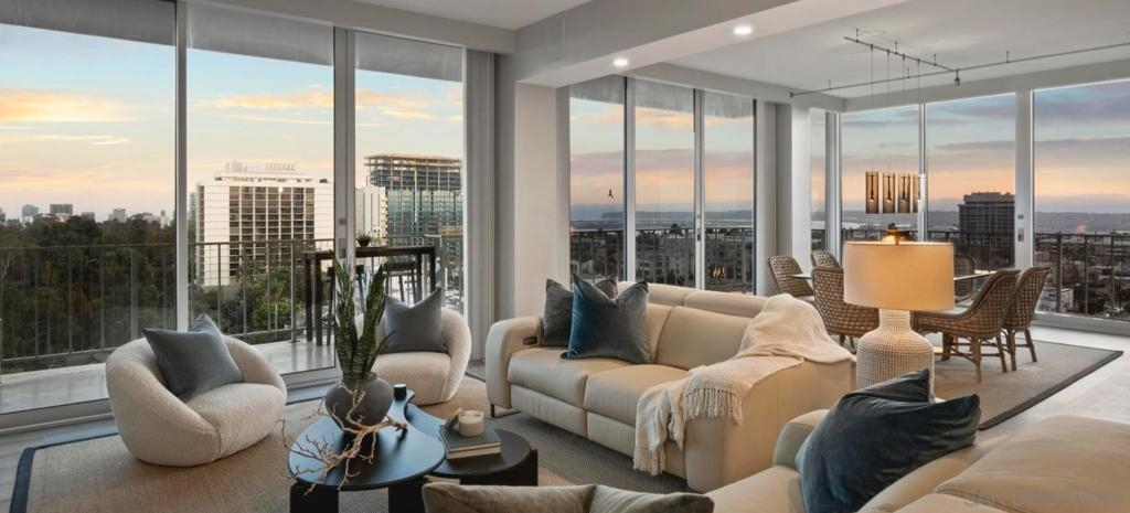 Penthouse 15G at Coral Tree Plaza offers 2,376 sq. ft. of reimagined top-floor living with a protected corner panorama spanning Balboa Park, Downtown, San Diego Bay, Point Loma, and Mount Soledad. Positioned in Hillcrest overlooking Marston Hills, the residence provides scale, privacy, and enduring view security. Features include a Wolf/SubZero kitchen with an oversized walk-in pantry, a spa-inspired primary suite with patio access, a connected office/den, and a guest suite with its own patio entry. Recent upgrades include new windows and sliders, system modernization, and a full Control4 smart-home platform. Community amenities include a large heated pool, full-size tennis courts, a clubhouse, guest suites, and secure parking — all with walkable access to Balboa Park, Whole Foods, and neighborhood dining. Storage is private and oversized, located conveniently near the unit’s parking (rare for the community). Repositioned at $2.525M for renewed visibility, this penthouse remains one of the strongest values for a true top-floor residence offering both park and bay views. Residence 15G delivers the proportions of a detached home with the ease of condominium living. The $800K+ renovation reshaped the floor plan for balanced circulation, natural light, and continuous indoor–outdoor connection through full-length glazing and patio access from every major room. The dual-exposure outlook — Balboa Park’s tree canopy to the east and the bay and Point Loma to the west — is exceptionally difficult to replicate. Most towers offer either a park view or a water view, seldom both, and almost never from a true top-floor corner position. Newer buildings with comparable square footage and only partial views often list $250K–$300K higher without matching the privacy, protected sightlines, or renovation quality seen here. Coral Tree Plaza strengthens the livability argument with a heated pool, full-size tennis courts, clubhouse, guest suites, and secure parking — all set within Hillcrest, immediately overlooking Marston Hills and within walking distance of Balboa Park, Whole Foods, cafés, and cultural venues. Storage is private and generously sized, located close to the unit’s parking; verify details with HOA. The new $2.525M positioning is a strategic visibility refresh aligned with buyer alerts and weekly MLS cycles, not a correction of underlying value.