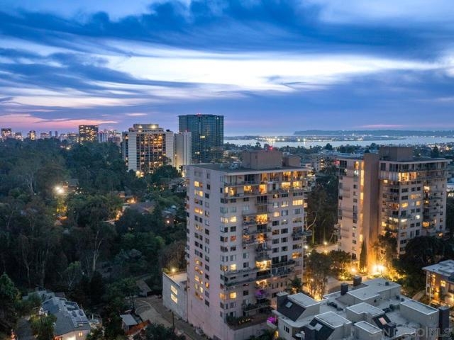 This beautiful, light-filled corner residence offers over 1,200 sq. ft. of spacious living with unbeatable walkability score to Hillcrest and Balboa Park. Step inside to discover elegant charcoal-gray tile flooring and an updated kitchen featuring stainless steel appliances, sleek cabinetry, and modern finishes that elevate the entire space. The open-concept layout provides both functionality and flexibility, making it easy to customize the home to your style. One of the standout features of Unit 2D is the expansive wrap-around patio—exclusive to only a select few corner units in Coral Tree Plaza—perfect for effortless indoor/outdoor living. The primary suite is a true retreat, complete with a dedicated work area, custom closet build-outs, ample cubbies, and a generous bath with double vanities and a luxurious soaking tub. Additional highlights include full-size stackable laundry and updated mechanical systems, making this an ideal choice for even the most discerning buyer. Coral Tree Plaza offers a vibrant and amenity-rich lifestyle, including a heated pool, spa, tennis court, fitness center, clubhouse with pool table and kitchen, bike lockers, car wash area, and guest parking. The HOA is exceptionally well-maintained with full-time on-site management, maintenance, and cleaning staff—ensuring the community is always pristine. Best of all is the neighborhood, filled with award winning restaurants and fun nightlife yet close to downtown, the beach and easy freeway access.