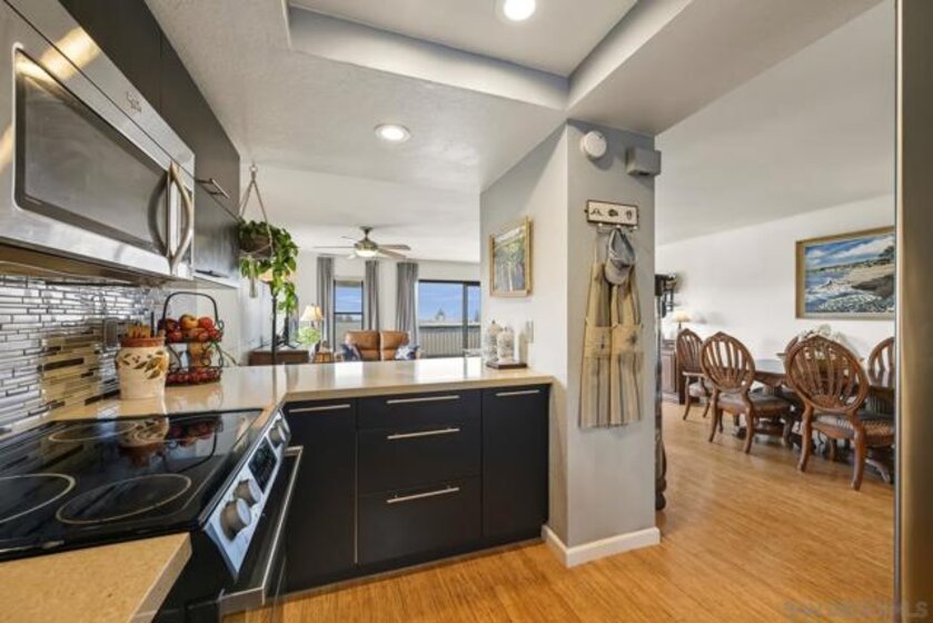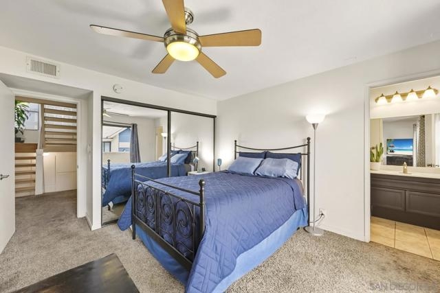 BEST DEAL IN THE NEIGHBORHOOD! Beautiful OCEAN and sunset views. VA Approved, end-unit townhome, attached 2 car garage plus additional assigned parking space in front of the unit. This residence offers a perfect blend of comfort, functionality, and coastal charm. Upon entry, you'll have the option to head upstairs to the main living area, where you'll find a spacious living room, dining area, and a modern kitchen equipped with appliances, most are about a year old. A convenient half bath and a west-facing balcony complete this level, offering peaceful ocean views — ideal for enjoying sunsets and fresh coastal breezes. From the entry level, you can also head downstairs to the private sleeping quarters, featuring two generously sized en-suite bedrooms - one with a balcony, perfect for comfort and privacy. Below the bedroom level, you'll find direct access to the attached two-car garage, which includes laundry hookups. A community, pool, spa, racquetball courts are an added bonus. Easy coastal access with Pacific Beach and Crystal Pier 3 miles away, 1 mile drive to Mission Bay. Accessible to all of San Diego with a bus stop 1 block away, 2 blocks to the Balboa Trolley station for travel to UTC, Downtown, and beyond. — don’t miss this fantastic opportunity!