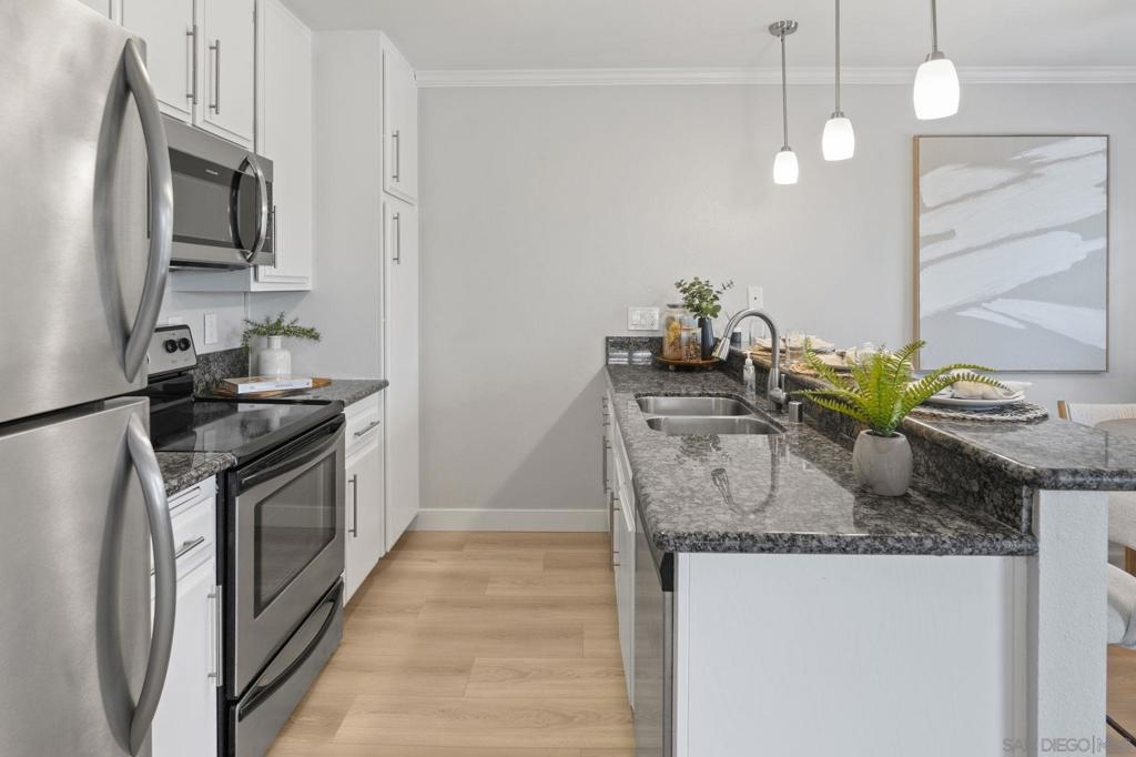 Welcome to Harbor Villas, nestled in the desirable Point Loma and Ocean Beach communities! Enjoy the best of coastal living with quick freeway access, just a 5-minute drive to the beach, and an easy stroll to lively Voltaire Street—home to local restaurants, shops, and fitness studios. This refreshed home features brand-new luxury vinyl plank flooring, triple-paned windows, plantation shutters, and crown molding throughout. The kitchen and bathrooms have been tastefully updated to blend modern style with relaxed coastal charm. Additional highlights include a two-car garage with extra storage, in-unit laundry conveniently located on your private patio, and one of the lowest HOA fees in the area. Experience comfort, style, and convenience—all in one beautiful coastal home!