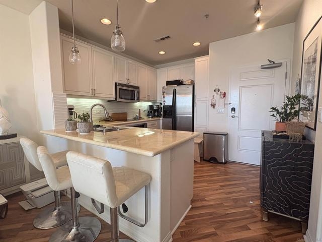 Located in the heart of Carmel Valley, walk across the street to Del Mar Highlands & One Paseo for boutique shopping, fitness studios, city library, parks, cozy coffee shops, and a dynamic mix of restaurants. Experience comfort & convenience in one of Carmel Valley's most central communities. This 2nd floor unit has an open floor plan with a U-shaped kitchen with tons of counter & cabinet space. Open to the large living room with floor to ceiling windows. The spacious balcony is extra private facing the back of the complex with no neighbors behind. The comfortable bedroom has a nice walk-in closet. The sizable bathroom has even more cabinets for storage, and features a full size washer and dryer. Pell Place is a fully gated & secured community with modern access systems for your guests and deliveries. Experience the exciting amenities including state of the art fitness center, dog run, BBQ area, plentiful EV car charging, putting green, and an active social community with an on-site HOA office. There is 1 assigned gated garage parking spot. Make this unique condo your home and start enjoying the vibrant & active community! Located in the heart of Carmel Valley, walk across the street to Del Mar Highlands & One Paseo for boutique shopping, fitness studios, city library, parks, cozy coffee shops, and a dynamic mix of restaurants. Experience comfort & convenience in one of Carmel Valley's most central communities. This 2nd floor unit has an open floor plan with a U-shaped kitchen with tons of counter & cabinet space. Open to the large living room with floor to ceiling windows. The spacious balcony is extra private facing the back of the complex with no neighbors behind. The comfortable bedroom has a nice walk-in closet. The sizable bathroom has even more cabinets for storage, and features a full size washer and dryer. Pell Place is a fully gated & secured community with modern access systems for your guests and deliveries. Experience the exciting amenities including state of the art fitness center, dog run, BBQ area, plentiful EV car charging, putting green, and an active social community with an on-site HOA office. There is 1 assigned gated garage parking spot. Make this unique condo your home and start enjoying the vibrant & active community!